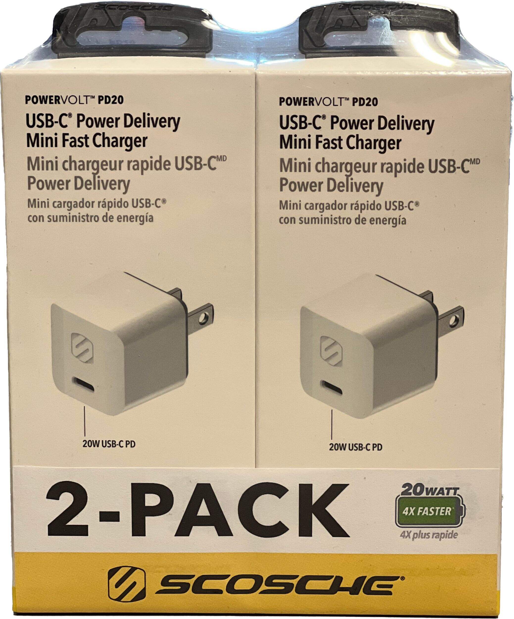 Chargeur mural 20 W Scosche à recharge très rapide, jusqu'à 4 fois plus vite qu'un chargeur USB standard de 5 W pour votre appareil USB-C