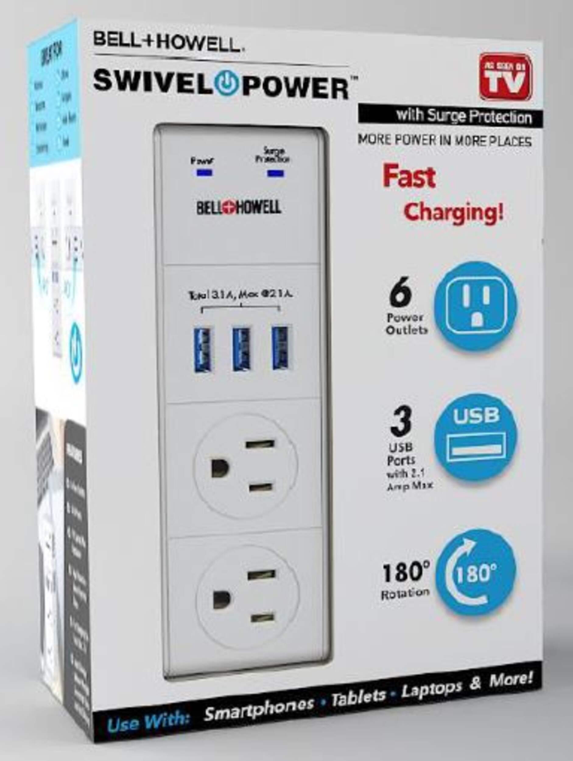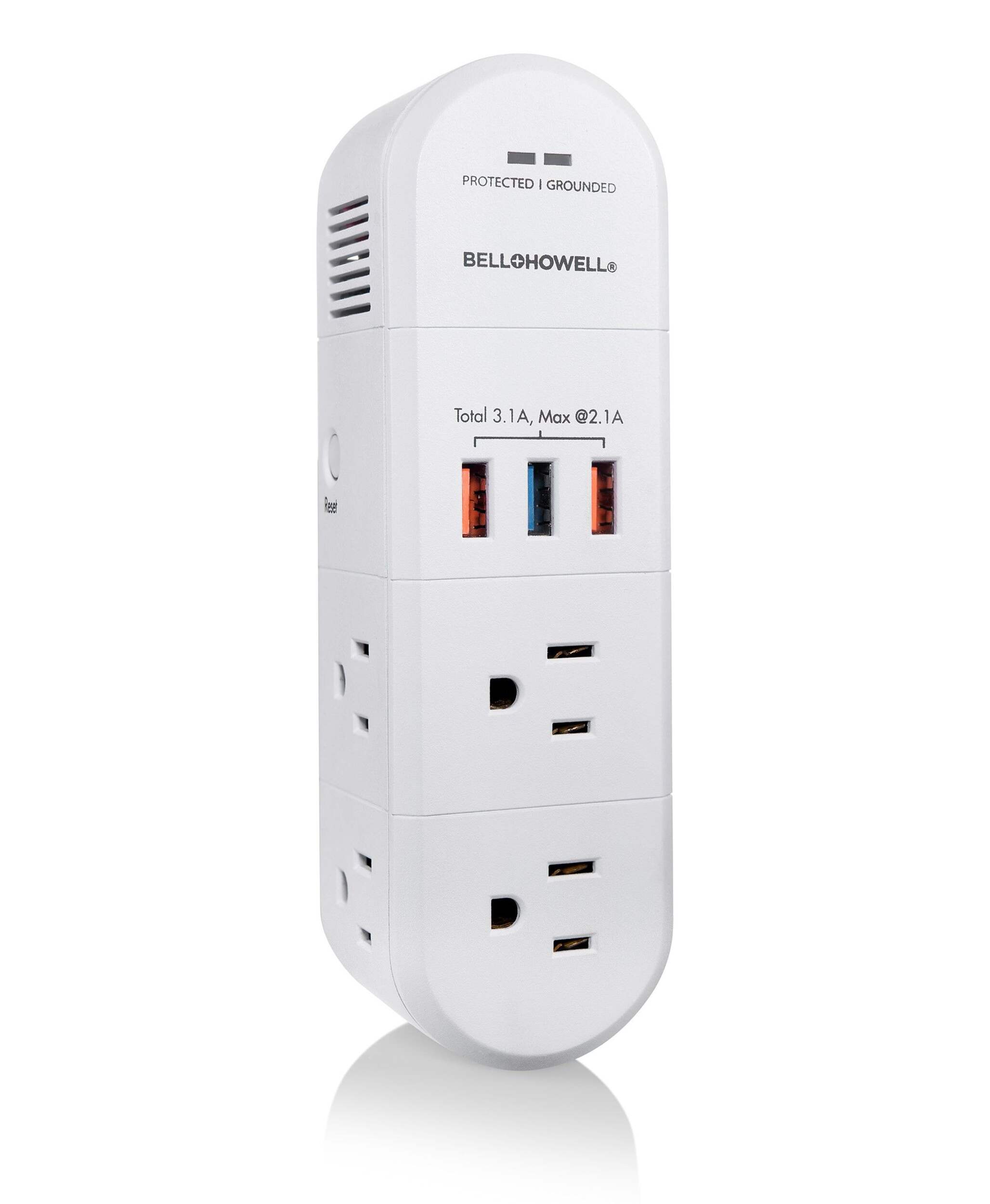 Un chargeur qui pivote? Dites-le plus. L’alimentation pivotante de Bell et Howell vous offre des prises et des ports USB où vous en avez le plus besoin, avec un bras flexible qui s’ajuste aux prises difficiles à atteindre. Ses 6 prises et ses trois ports USB offrent amplement d'énergie pour tous vos appareils, tandis que la protection contre les surtensions de 3000 W protège tout. Conçue pour la vitesse, une recharge rapide n’a jamais été aussi facile.