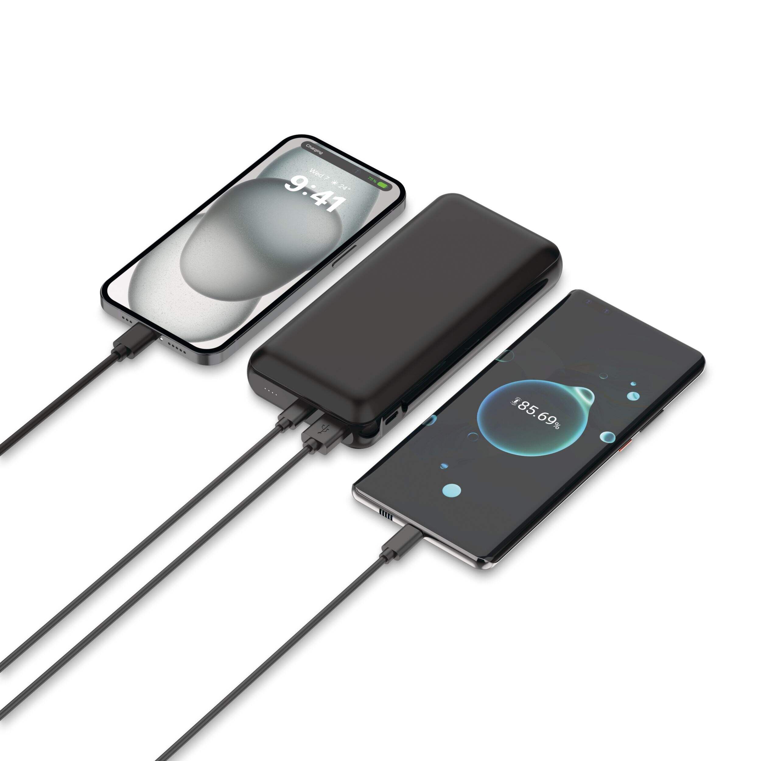 Ce chargeur portatif mince est une solution d'alimentation ultra-compacte qui regorge de puissance. Avec sa capacité de 20 000 mAh, il garantit une puissance fiable dans un format compact
