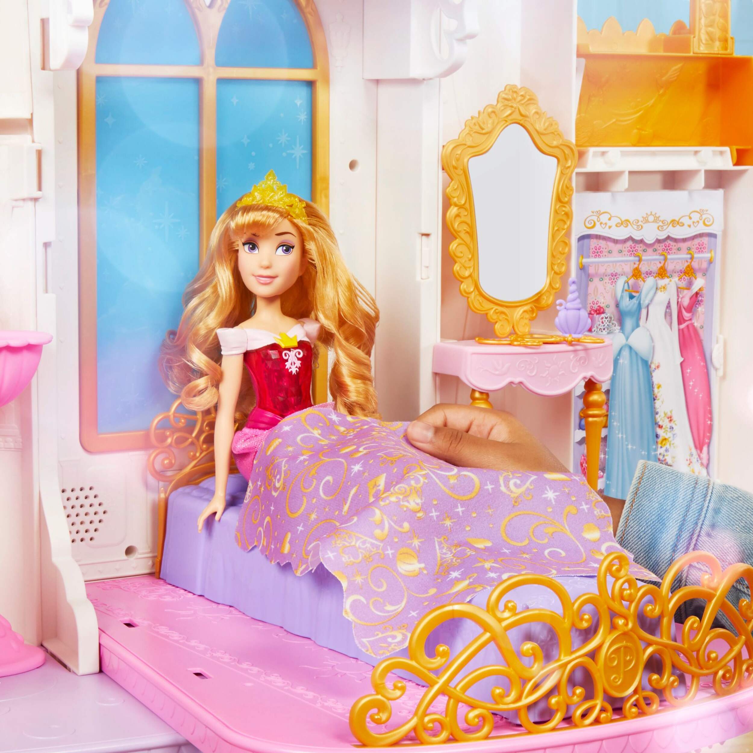 CHÂTEAU DE CÉLÉBRATION ULTIME : avec sa silhouette de château emblématique, cette maison de poupée des princesses de Disney mesure 4 pi de haut, avec 3 étages et 6 pièces. (Poupées vendues séparément. Selon la disponibilité.)