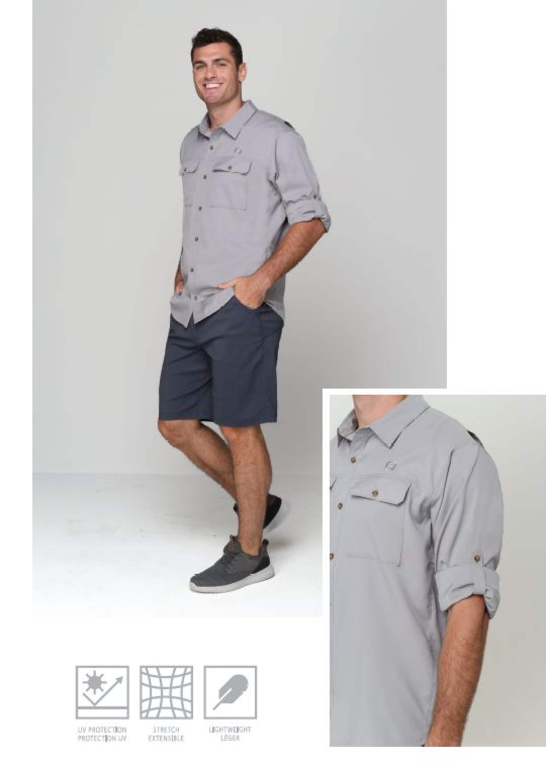 Ce chemisier boutonné offre une protection solaire (FPS) 40 contre les rayons nocifs du soleil. Le tissu en mélange de polyester évacue l'humidité pour vous garder au frais et au sec, tandis que les manches enroulables et les évents au dos permettent une respirabilité accrue. Idéal pour les activités extérieures où vous voulez une protection solaire sans sacrifier le confort.