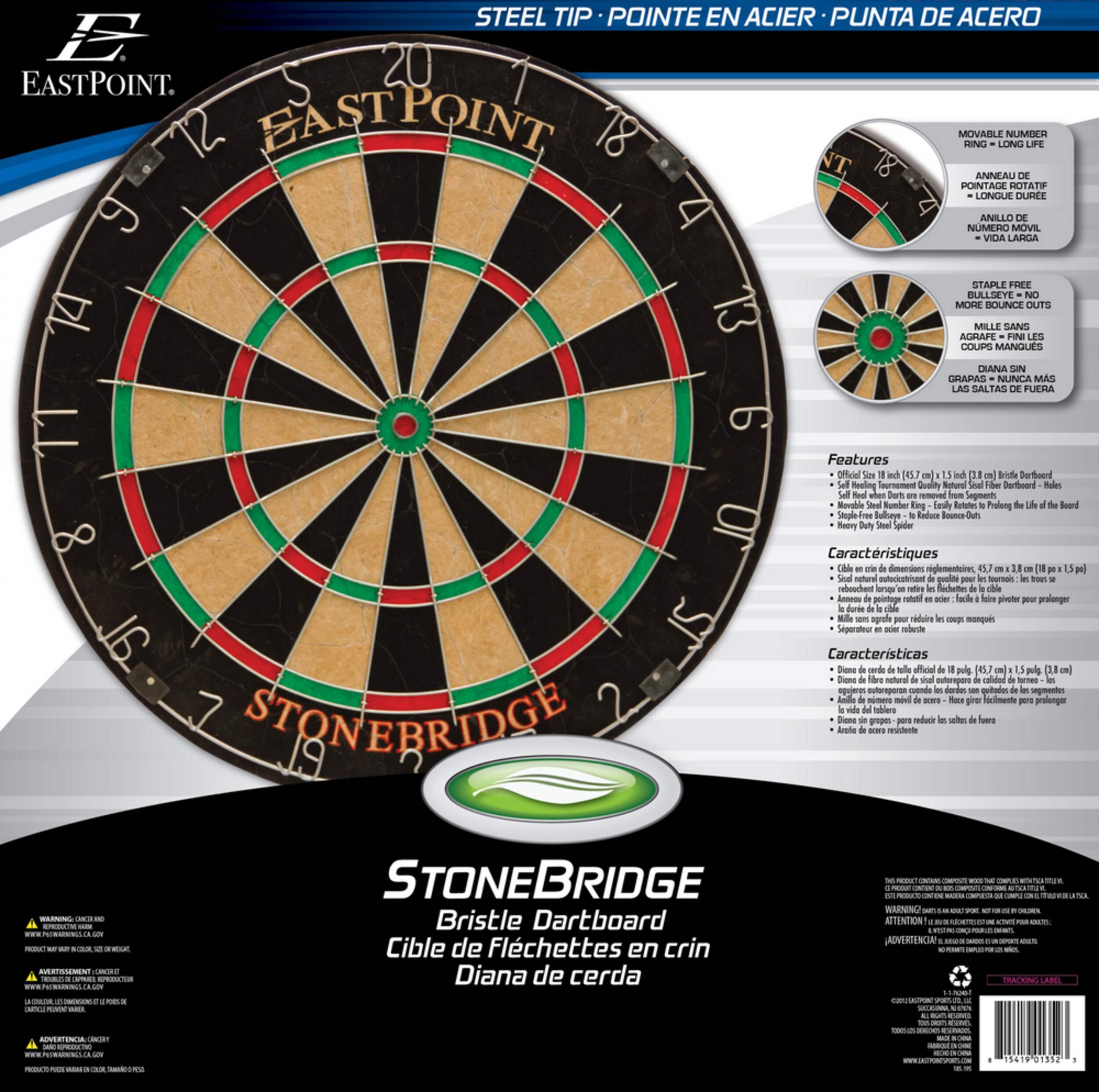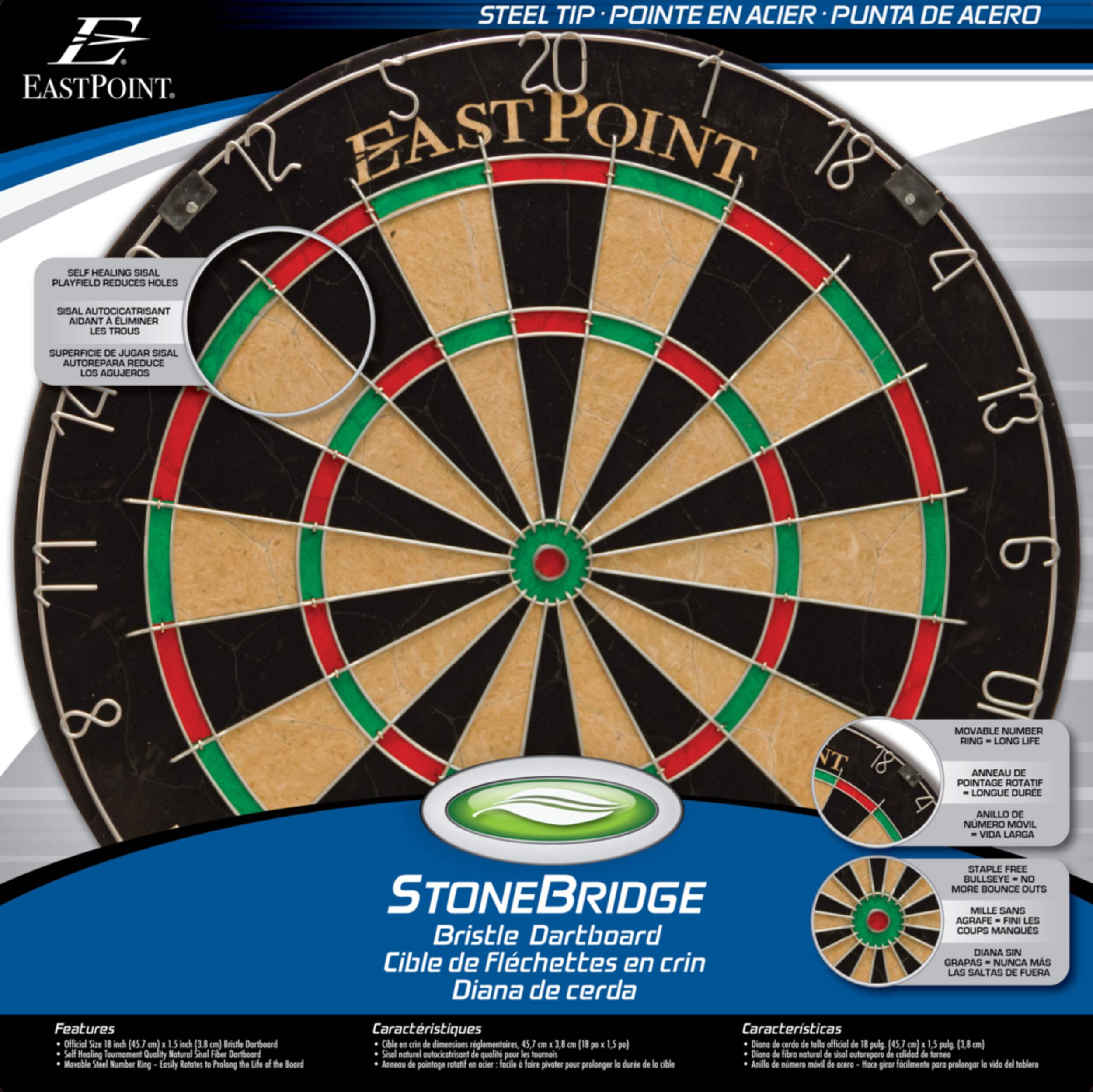Transformez n'importe quelle pièce en espace de jeu ultime avec le jeu de fléchettes EastPoint Stonebridge Bristle. Ce jeu de fléchettes de taille officielle est doté d'une cible en fibre de sisal naturelle de qualité tournoi dont les trous se referment automatiquement après chaque lancer, assurant ainsi une longue durée de vie. La cible sans agrafes minimise les rebondissements pour un jeu plus précis et agréable, idéal pour les matchs compétitifs. L'anneau de pointage en acier mobile permet une rotation facile, répartissant uniformément l'usure et prolongeant la durée de vie de votre cible. Que vous cherchiez à vous amuser ou à faire des compétitions sérieuses, cette cible de jeu de fléchettes vous garantit des heures de divertissement.