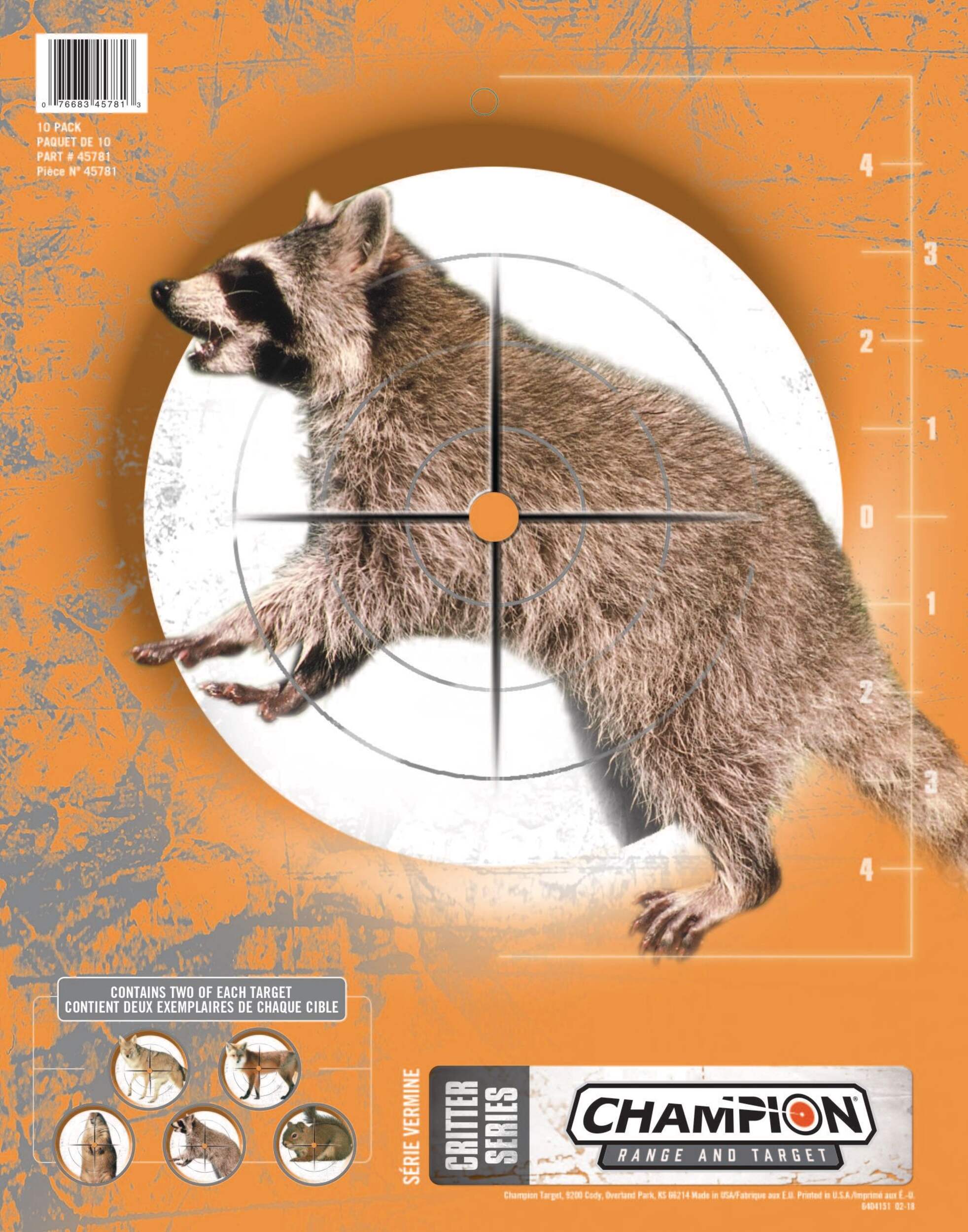 Donnez à vos entraînements sur les prédateurs et les animaux nuisibles une touche de réalité avec les cibles de la série Critter de Champion. Chaque animal présente un placement idéal pour le tir et offre aux tireurs un moyen amusant d'interagir avec leur cible.