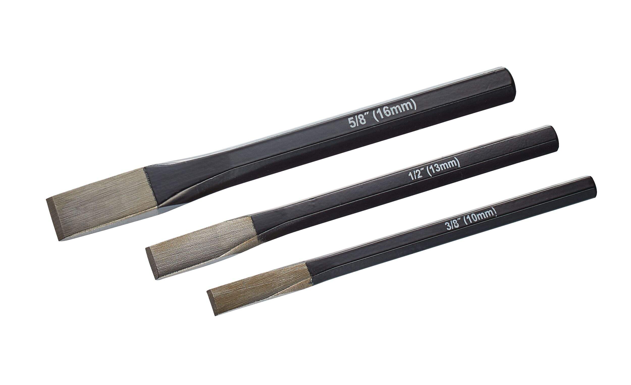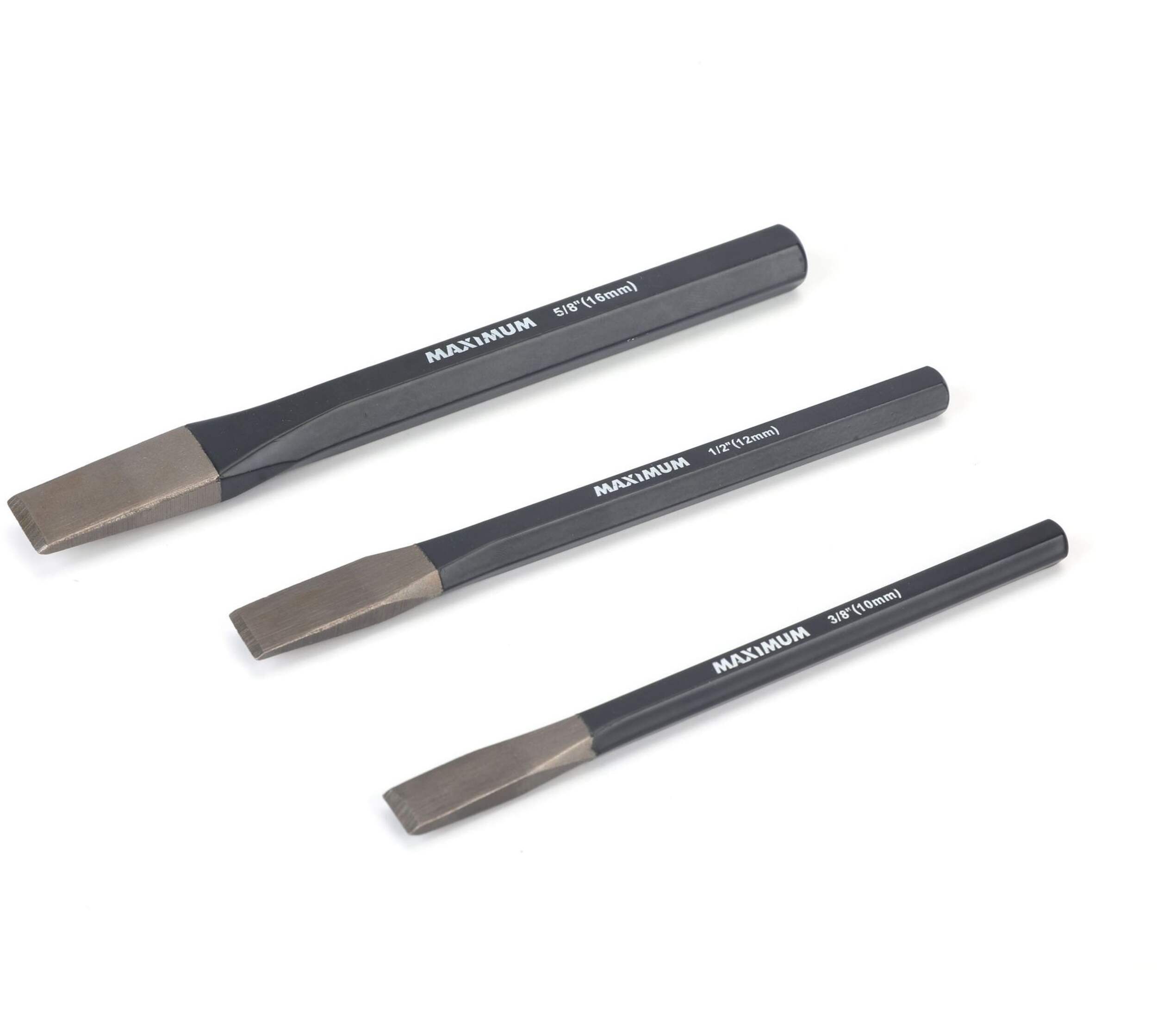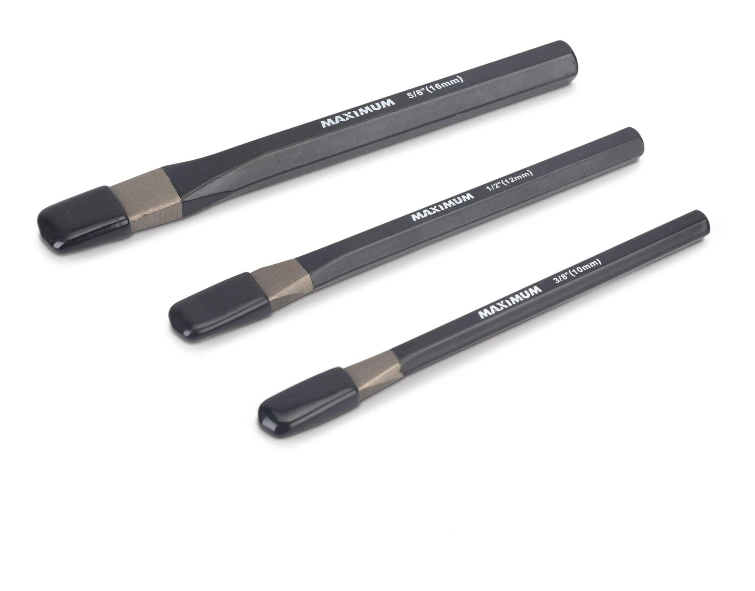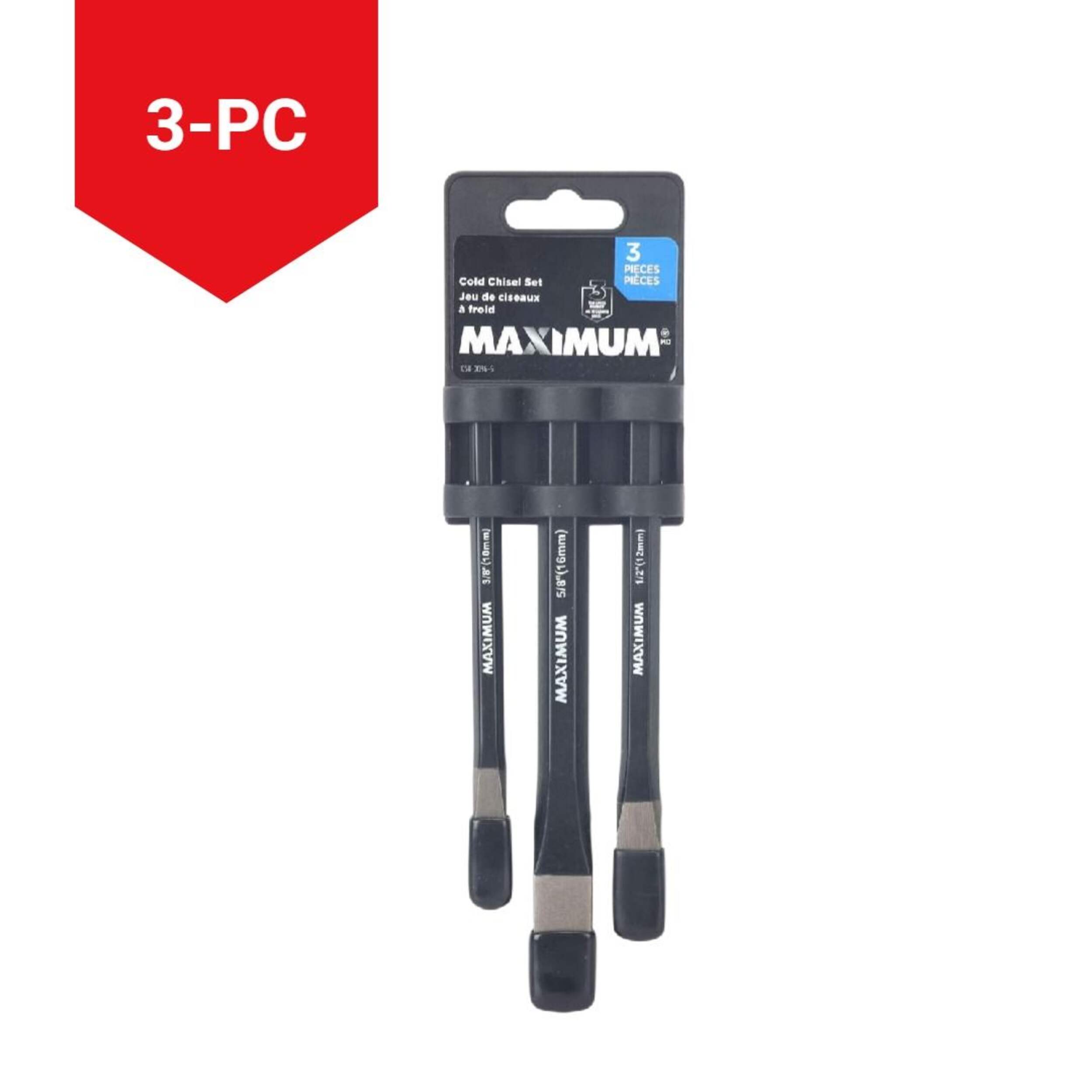 Coupez des matériaux durs comme le métal et la maçonnerie avec les ciseaux à froid MAXIMUM. Un fini thermolaqué protège la surface de chaque ciseau de la trousse. Grâce à leur construction durable en acier à haute teneur en carbone, chacun des ciseaux à froid inclus résiste à la rouille.