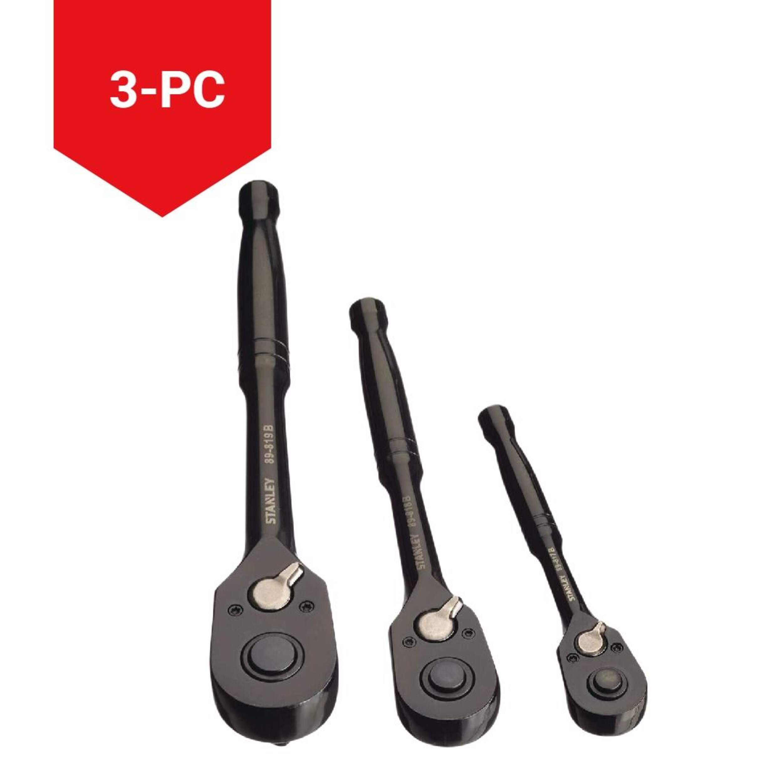 Comprend 3 cliquets : douilles de 1/4 po, 3/8 po et 1/2 po