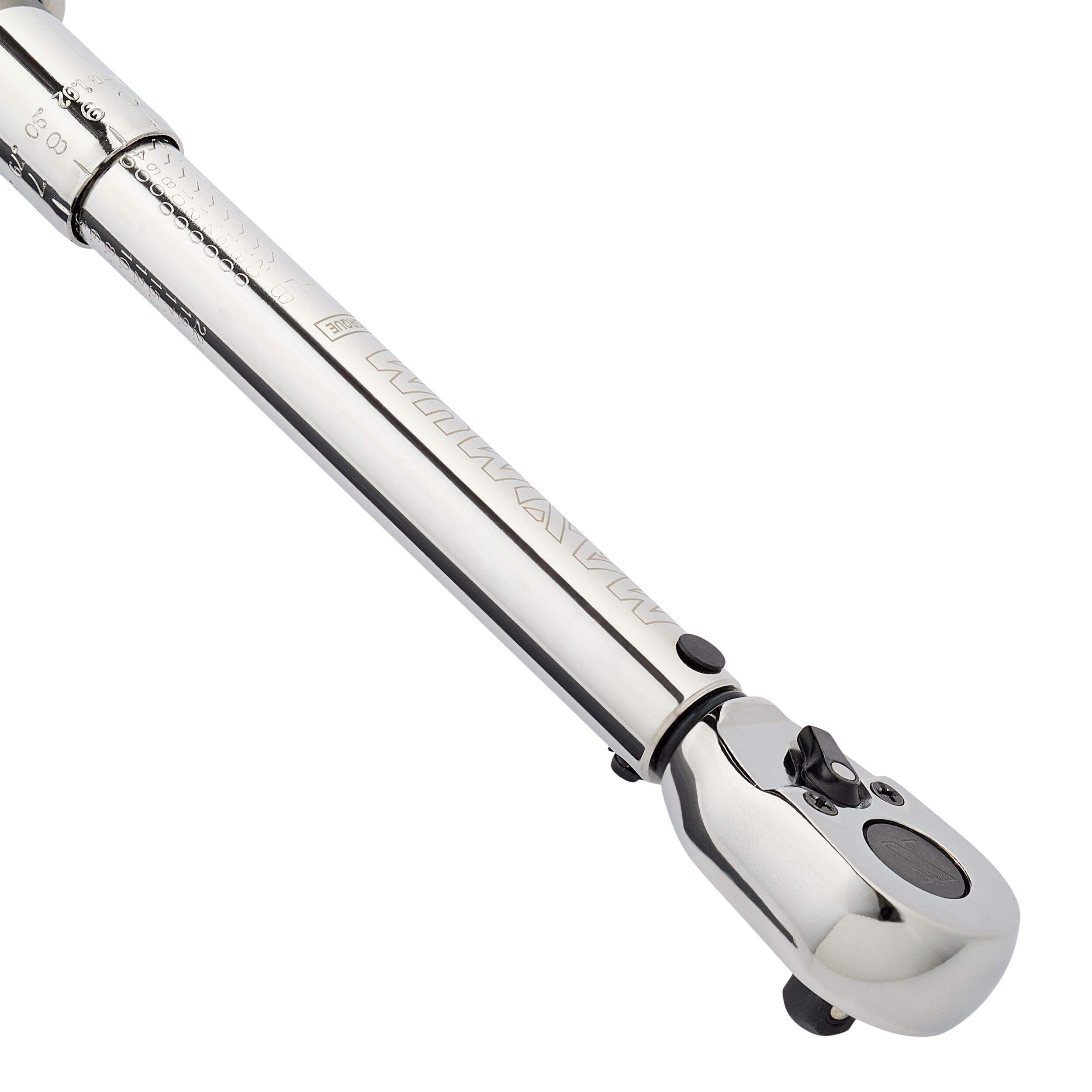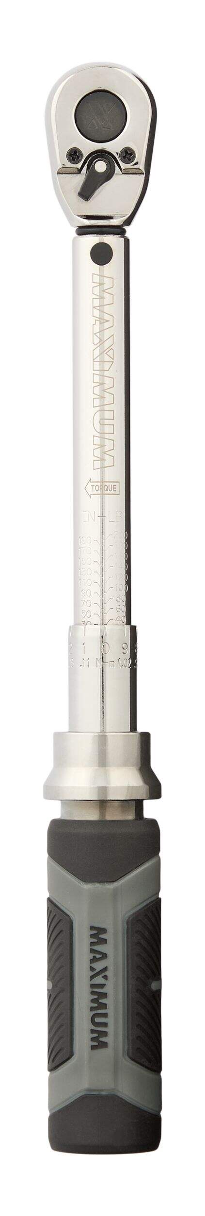 La clé dynamométrique MAXIMUM est conçue pour la précision dans les applications à faible couple, avec une prise de 1/4 po et une plage de couple de 40 à 200 po-lb. Son mécanisme de contrôle à roulement à billes assure des résultats précis et constants à tout coup. Avec un interrupteur de marche arrière facile à utiliser pour des changements de direction en douceur, cette clé offre aussi des clics sonores et mécaniques, de sorte que vous connaîtrez le moment exact où le bon couple est appliqué, évitant ainsi le serrage excessif et assurant des réglages parfaits.