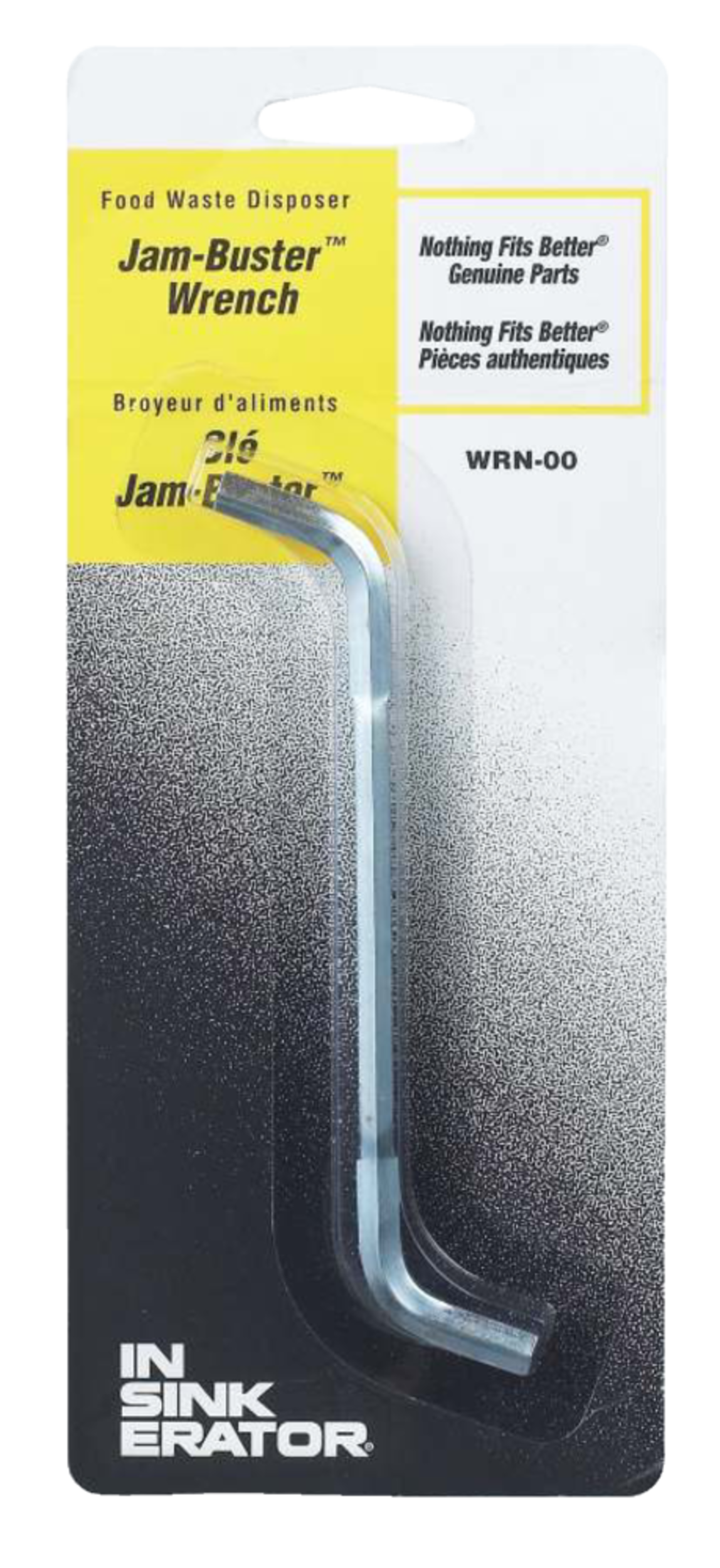 La clé Jam-BusterMC est un outil rapide et efficace pour éliminer les bourrages simples dans votre broyeur fabriqué par InSinkEratorMD. Insérez la clé hexagonale dans le trou central au bas du broyeur, puis tournez-la d'avant en arrière pour libérer le bourrage. Ne fonctionne qu'avec les broyeurs fabriqués par inSinkErator.