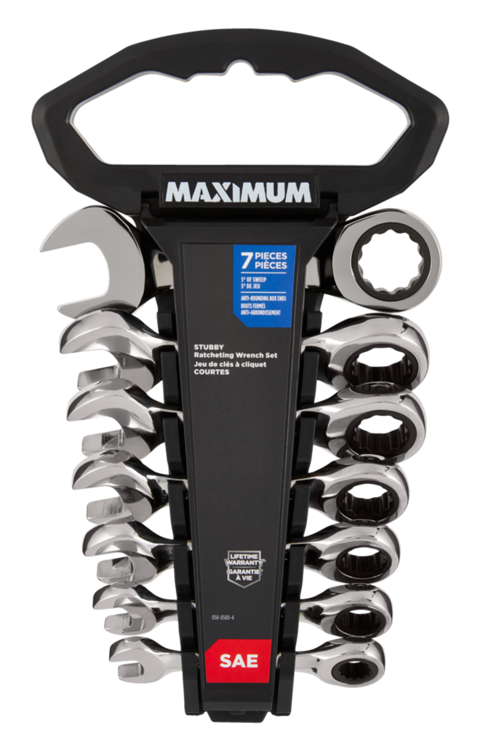 Les clés à cliquet courtes MAXIMUM sont excellentes pour effectuer des travaux dans les espaces restreints en toute aisance. Chaque clé à cliquet ne nécessite qu'un pivot de 5°, ce qui la rend idéale pour affronter les endroits où une clé standard ne passe pas. Fabriqué en alliage d'acier durable avec un fini poli pour résister à la rouille, cet ensemble comprend 7 tailles SAE pour une utilisation polyvalente. La fabrication haute performance garantit une durabilité et une fiabilité à long terme.
