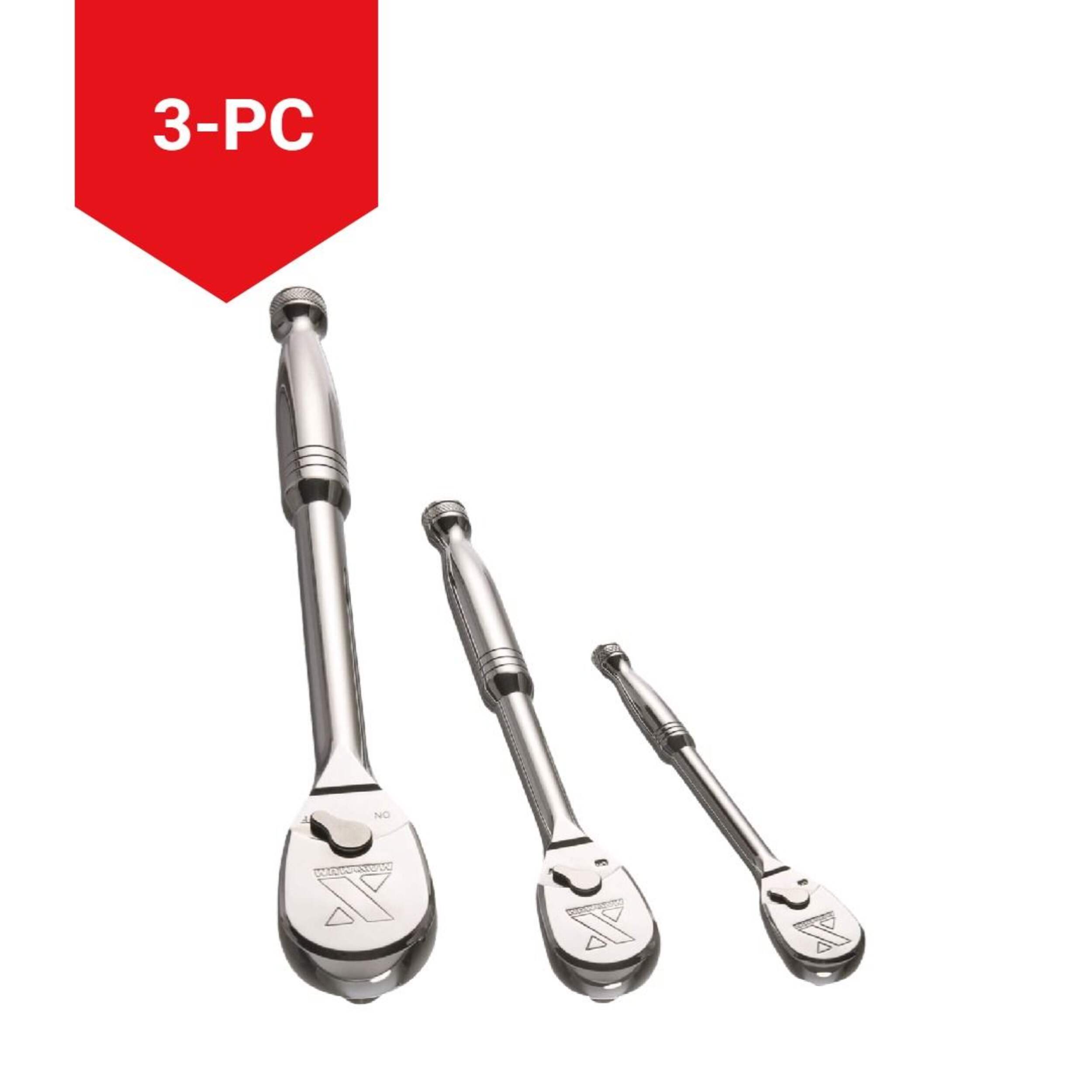 Cliquet MAXIMUM à 90 dents offrant une accessibilité et une robustesse accrues, et une construction en acier chromé robuste pour plus de solidité et de durabilité. Sa conception précise à 90 dents permet un mouvement facile des fixations, chaque cliquet ayant une taille unique et nécessitant un pivot minime. Ces clés à cliquet par MAXIMUM résistent aussi à la corrosion et sont dotées d'un fini nickel épuré. Garantie à vie comprise.