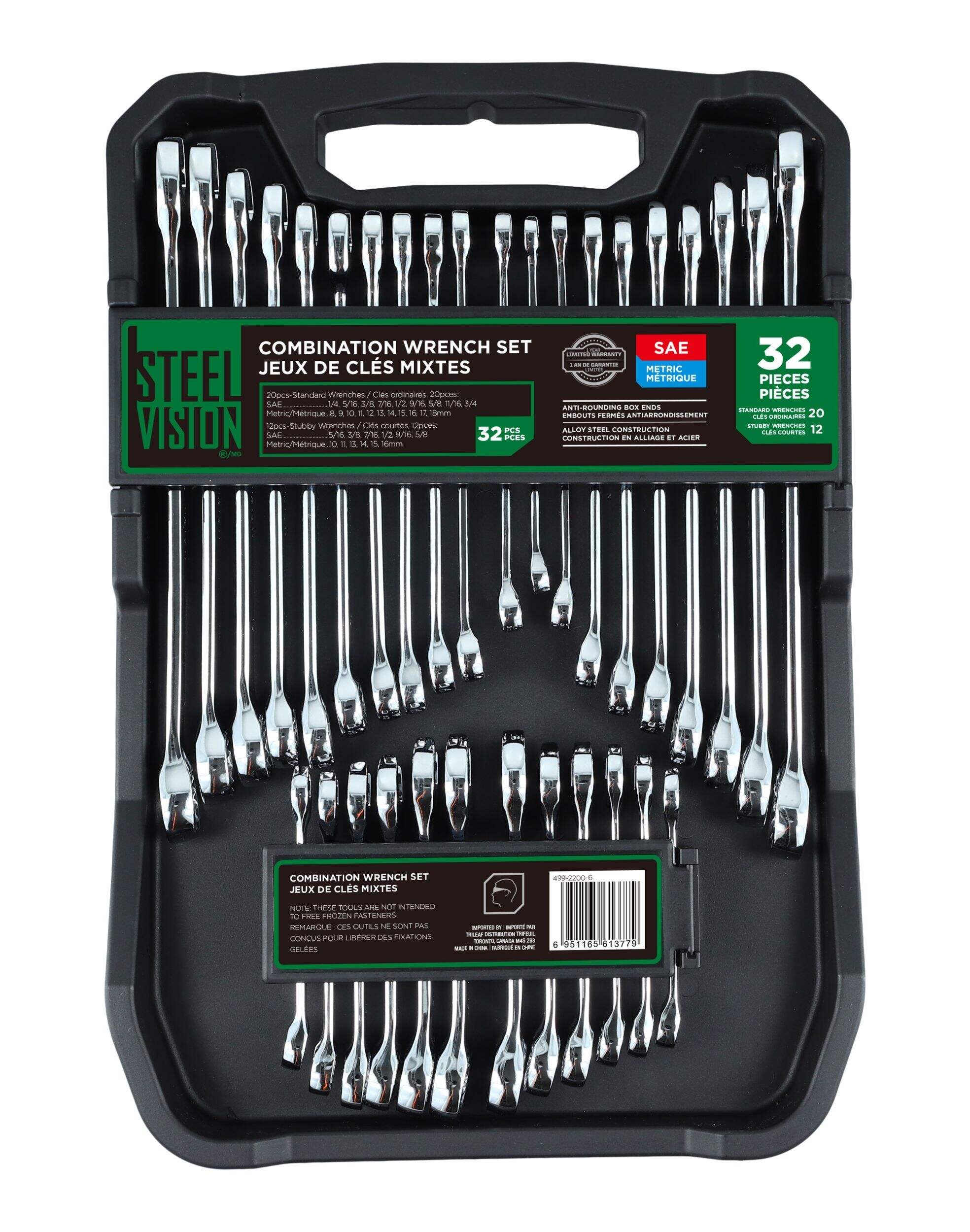 9 clés SAE de longueur standard : 1/4, 5/16, 3/8, 7/16, 1/2, 9/16, 5/8, 11/16 et 3/4 po