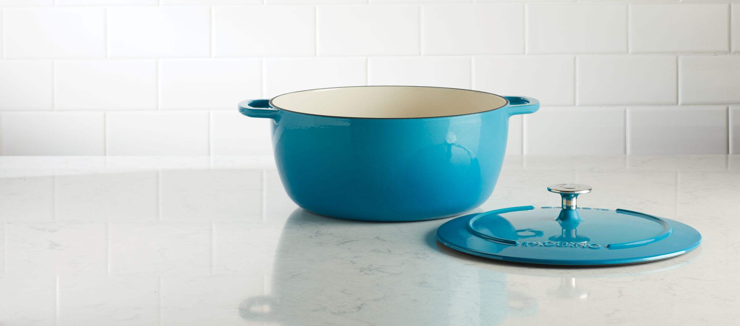 Alliant élégance et commodité, la cocotte en fonte PADERNO de 6,6 L (7 pintes) est un ustensile indispensable dans toute cuisine. Sa conception concentre l'humidité et la restitue aux aliments pour des plats tendres et savoureux. Les anneaux surélevés éloignent l'humidité des bords pour améliorer l'autoarrosage, ce qui garantit des résultats parfaits à chaque fois. Idéale pour braiser, cuire, frire et plus encore, cette cocotte hollandaise est dotée d'une poignée à prise ergonomique pour une utilisation confortable. Sa couleur bleu atlantique vif ajoute une touche d'élégance à votre cuisine tout en rendant la cuisson gastronomique facile et agréable.