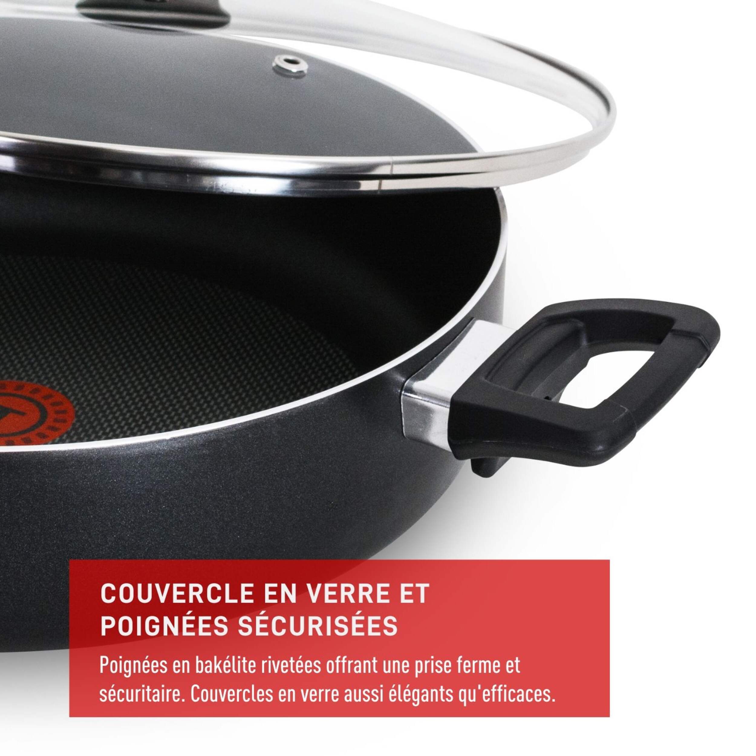 Comprend un couvercle en verre trempé pour emprisonner l'humidité et les saveurs pendant la cuisson