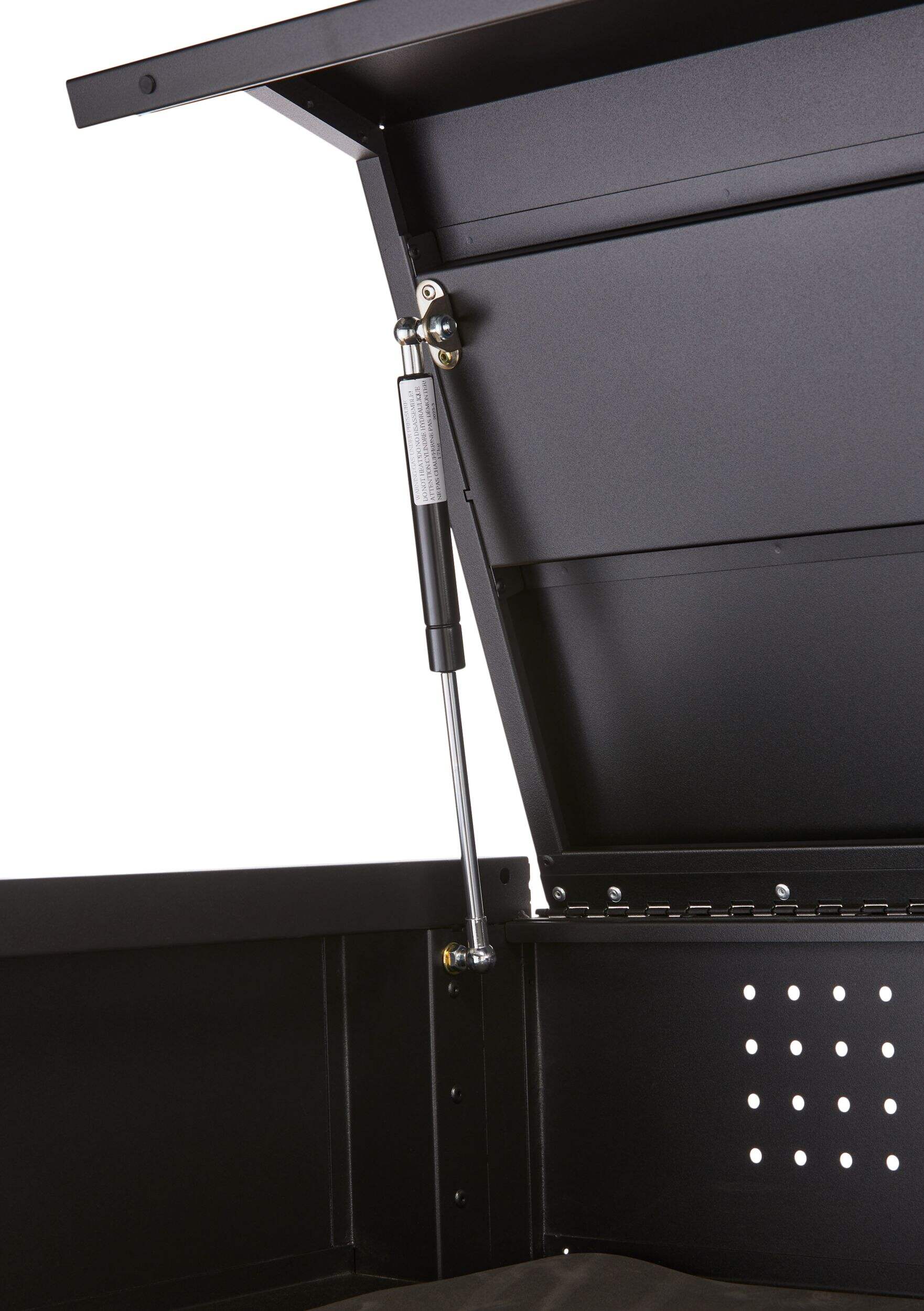 | Fonctionnalités avancées | Glissières à roulements à billes, Très robuste, Indicateur verrouillable, Fini peint par poudrage, Système de verrou de sécurité, Couvercle ouvert sécurisé |