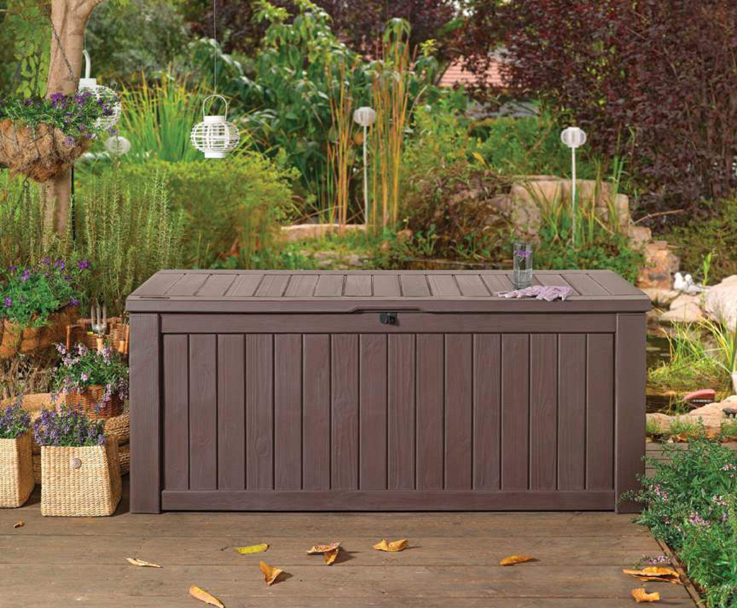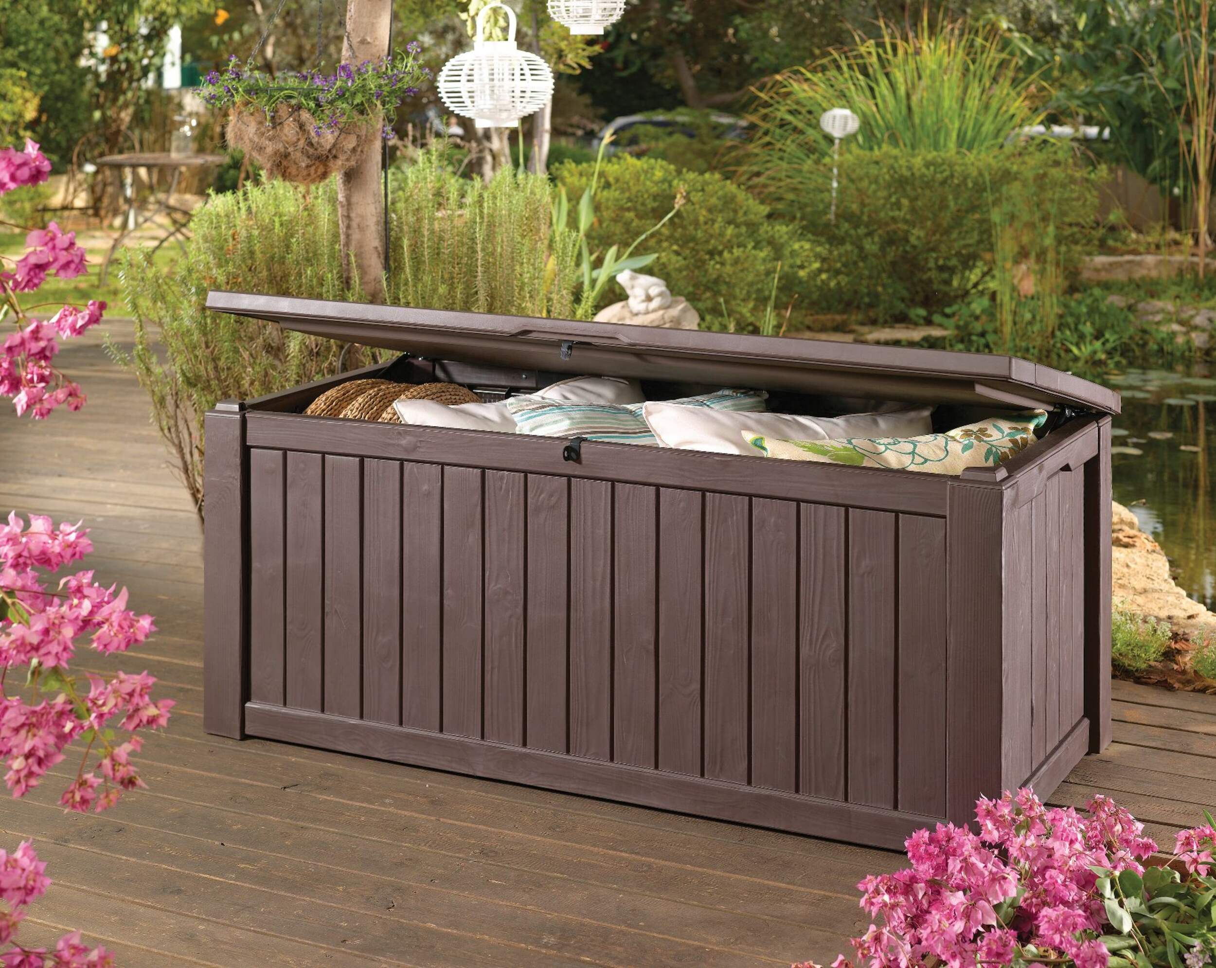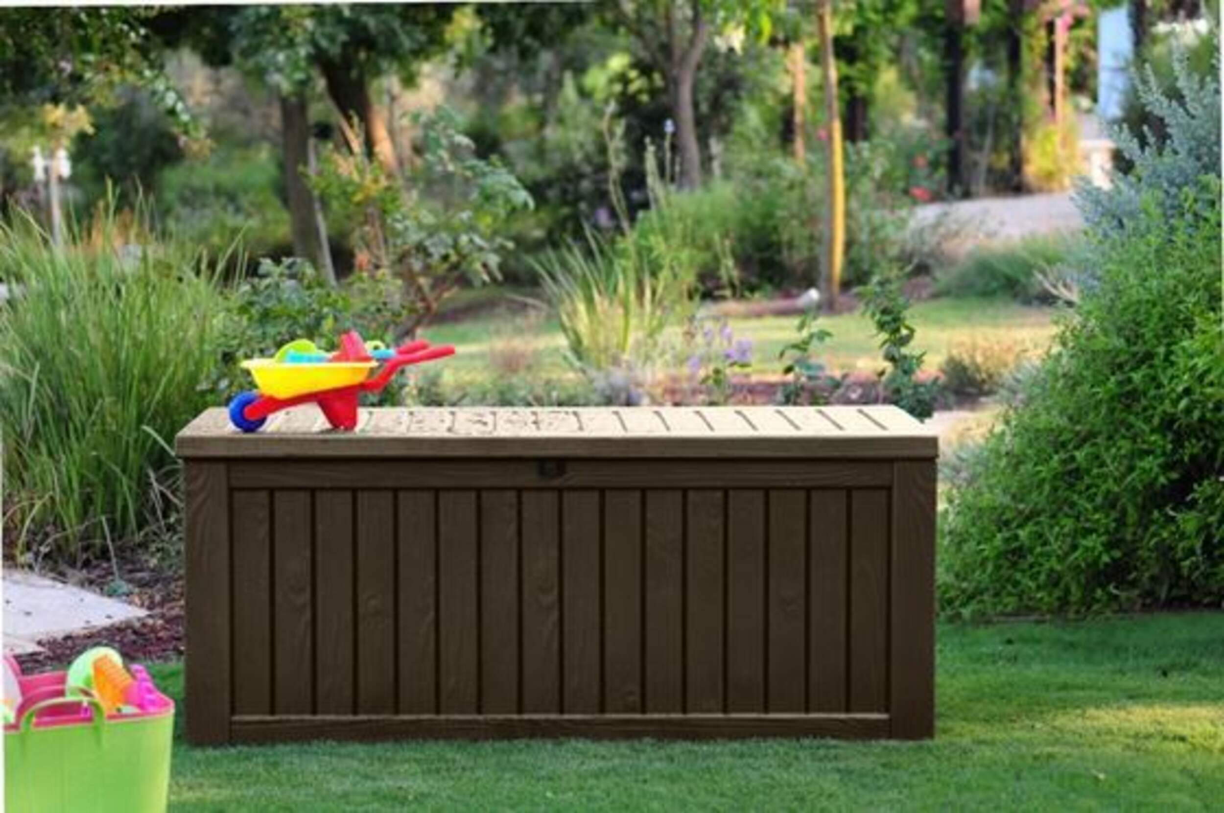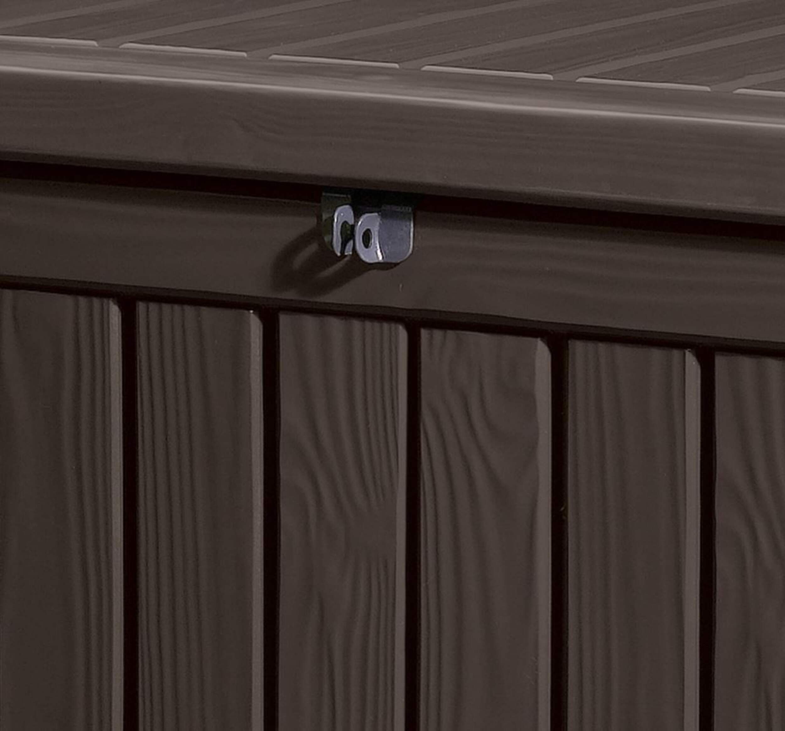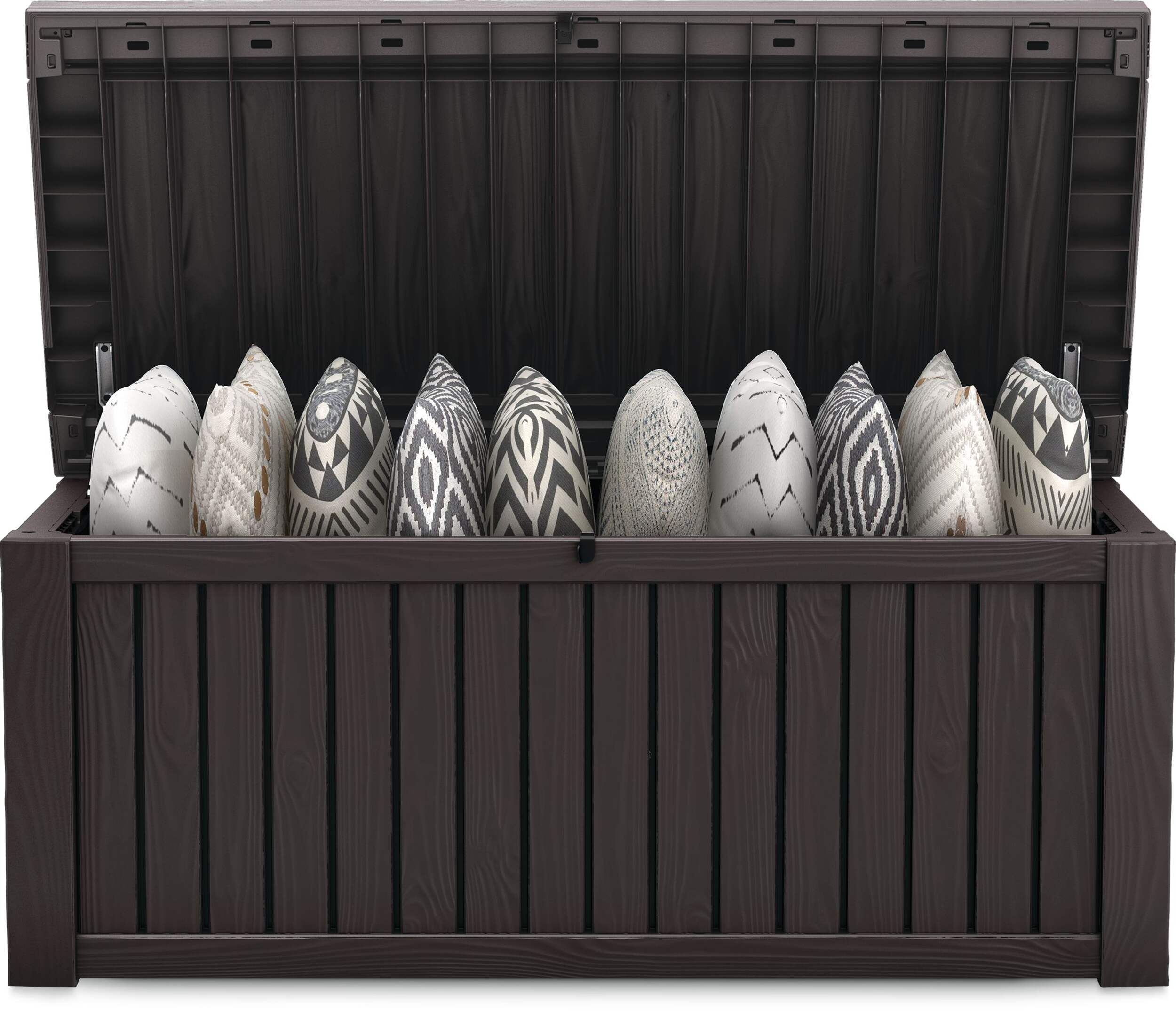 Le coffre de rangement d'extérieur d'aspect bois Keter transforme votre espace extérieur avec ses panneaux en bois élégants et sa construction en résine durable. Ce coffre de terrasse polyvalent offre amplement d'espace pour de gros articles comme des coussins, des outils de jardinage et des accessoires de piscine, tout en servant de banc confortable pour deux adultes. Conçu pour résister à diverses conditions météorologiques, ce coffre de rangement combine fonctionnalité, commodité et attrait esthétique.