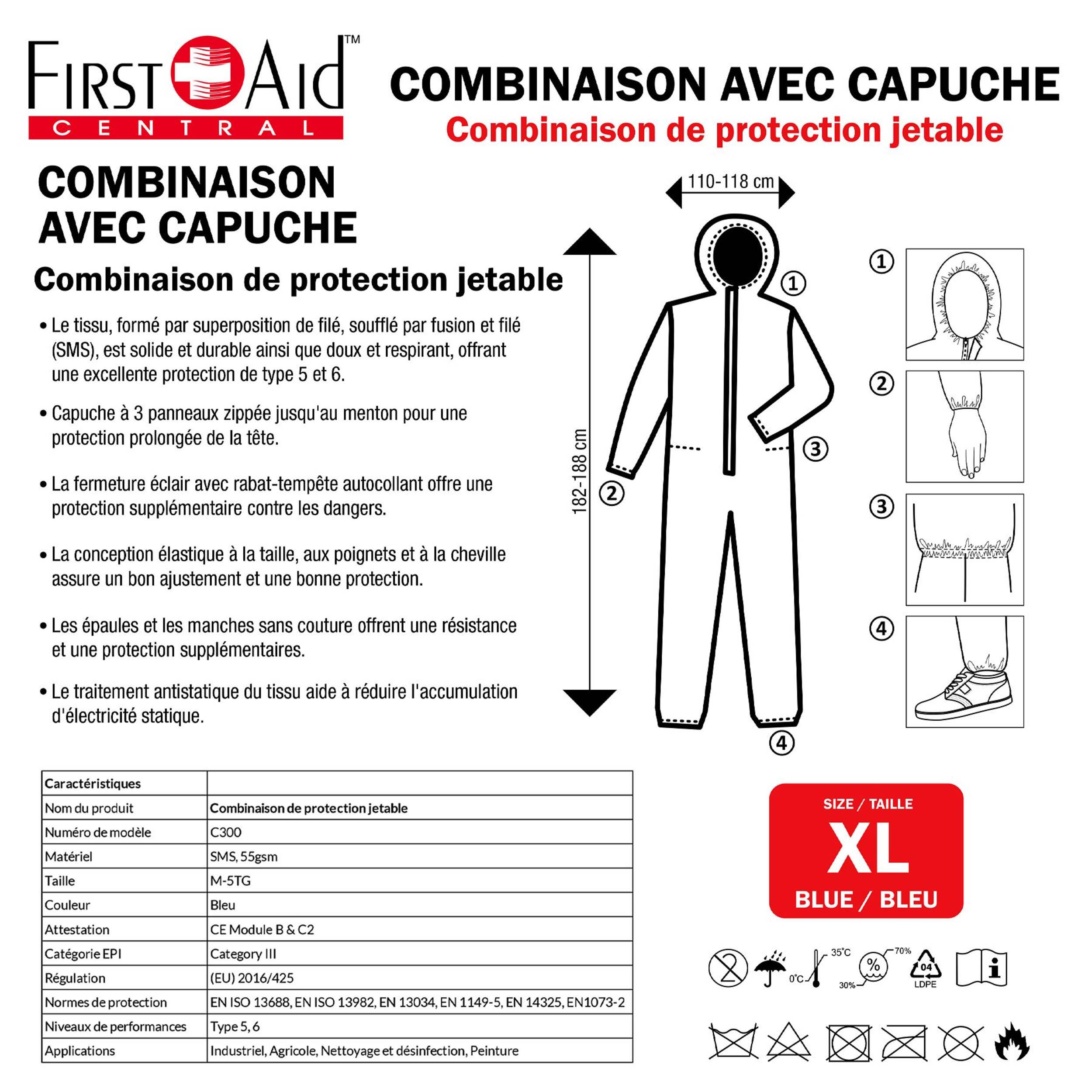 Grande résistance aux déchirures et à l'abrasion qui rend les vêtements de protection jetables C300 SMS durables et sécuritaires, offrant ainsi une protection de type 5/6 aux travailleurs