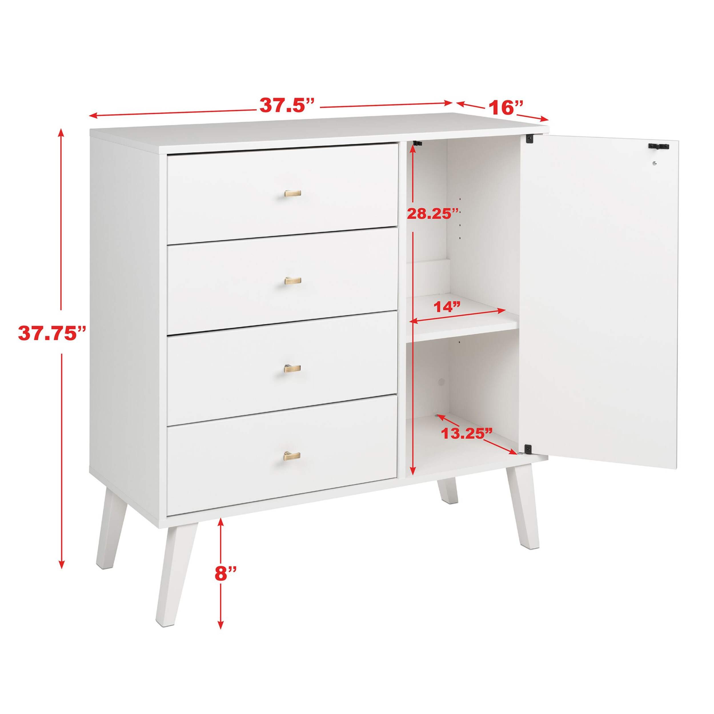 • Commode Prepac Milo à 4 tiroirs avec porte, de style moderne du milieu du siècle, offre une solution de rangement et d'organisation à l'allure rétro chic convenant à n'importe quelle chambre à coucher