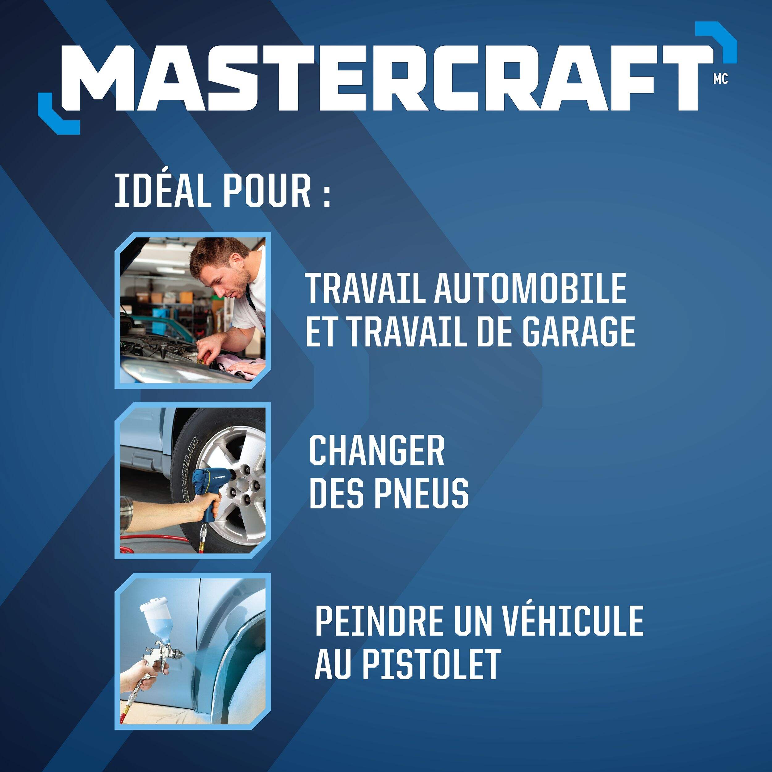 Le compresseur d'air vertical Mastercraft de 26 gallons offre une pression impressionnante de 135 lb/po2, soit la puissance nécessaire pour faire fonctionner efficacement les outils pneumatiques au travail ou à la maison. Ce compresseur d'air sans huile allie une grande puissance à un modèle compact, le rendant idéal pour des travaux allant des cloueuses de finition aux clés à chocs, en passant par les pistolets de pulvérisation et le gonflage des pneus. Grâce à son fonctionnement sans huile à faible entretien, vous pouvez vous concentrer sur vos projets et moins sur l'entretien. Les roulettes en caoutchouc durable et la poignée fixe améliorent la portabilité, ce qui vous permet de le déplacer facilement où vous en avez besoin. Réalisez tous vos projets de toiture, de charpente, de revêtement de sol et de carrosserie automobile grâce à la puissance et à la commodité exceptionnelles du compresseur d'air Mastercraft.