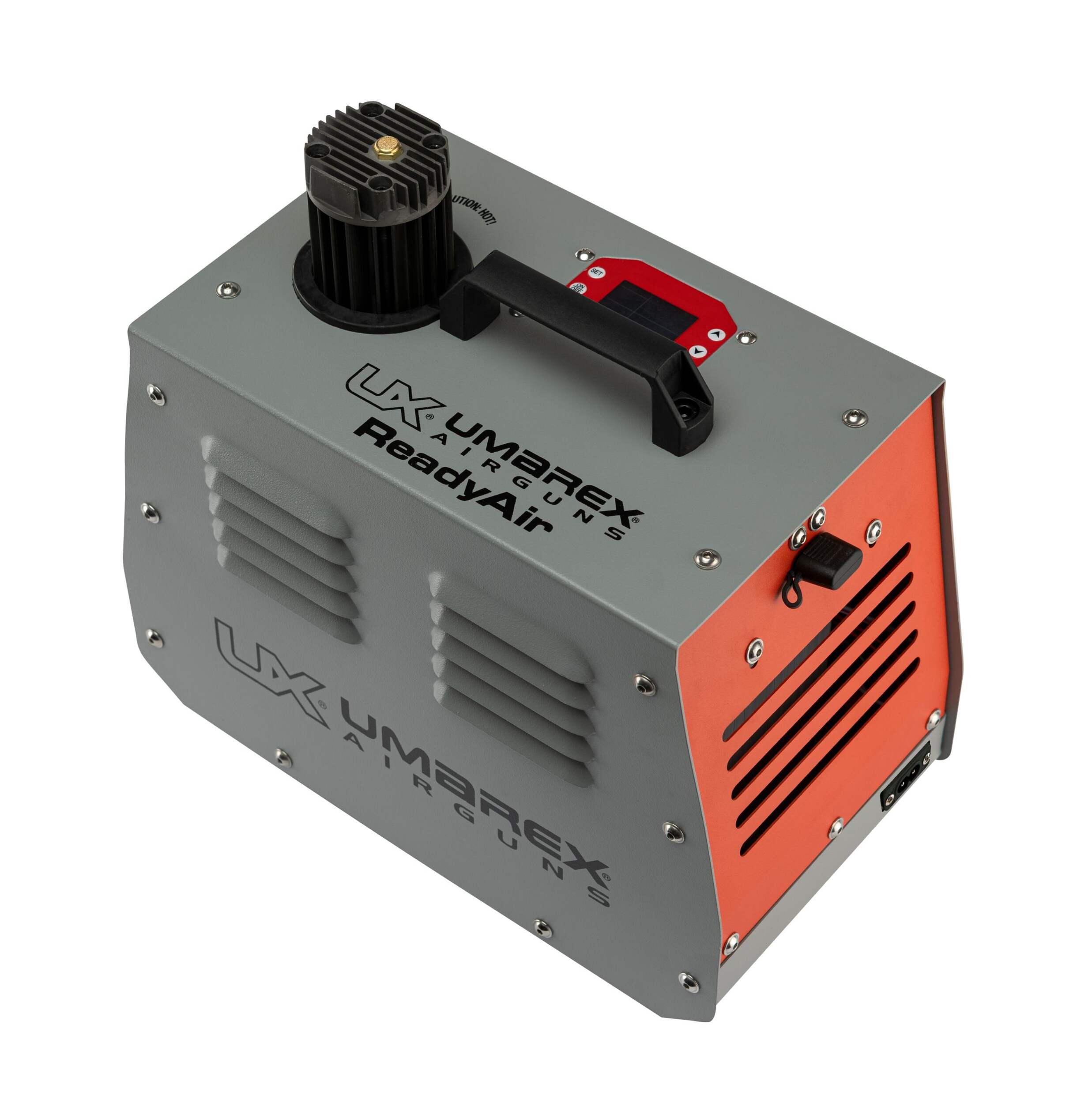 COMPRESSEUR POUR FUSIL À AIR COMPRIMÉ UMAREX READY AIR. Les armes pneumatiques préchargées gagnent en popularité comme jamais auparavant. Le compresseur pour fusil à air comprimé électronique Umarex ReadyAir est prêt à rétablir la pression du réservoir d'air de votre arme pour vous permettre de tirer à nouveau. Le modèle ReadyAir est une pompe à air haute pression qui n'a pas besoin d'huile ni de radiateur à remplissage liquide pour le refroidissement. La conception avancée de ce compresseur vous permet de vous soucier de moins de choses lors du remplissage. Il suffit de brancher l'alimentation, de régler le module de commande numérique intelligent pour la pression requise et de faire les raccords appropriés. Le circuit de protection automatique intelligent contre la surchauffe protège votre investissement pour que vous puissiez continuer à faire régulièrement le plein sans vous inquiéter. Le remplissage du réservoir de 13 pouces cubes de l'Umarex Gauntlet de 0 à 3000 lb/po2 prend environ 7 minutes. Le remplissage nécessite environ 4 minutes quand le réservoir est encore partiellement plein. Le remplissage de l'Umarex Hammer prend environ 27 minutes quand il est vide et beaucoup moins longtemps pour refaire le plein après quelques tirs. Les réservoirs plus volumineux nécessiteront plus de temps de remplissage, mais avec la tranquillité d'esprit que procure la protection intelligente et automatique contre la surchauffe, vous pouvez les remplir selon vos besoins sans souci. L'Umarex ReadyAir peut gérer des remplissages jusqu'à 4 500 lb/po2 pour de puissantes carabines à flèches telles que l'Umarex AirSaber.