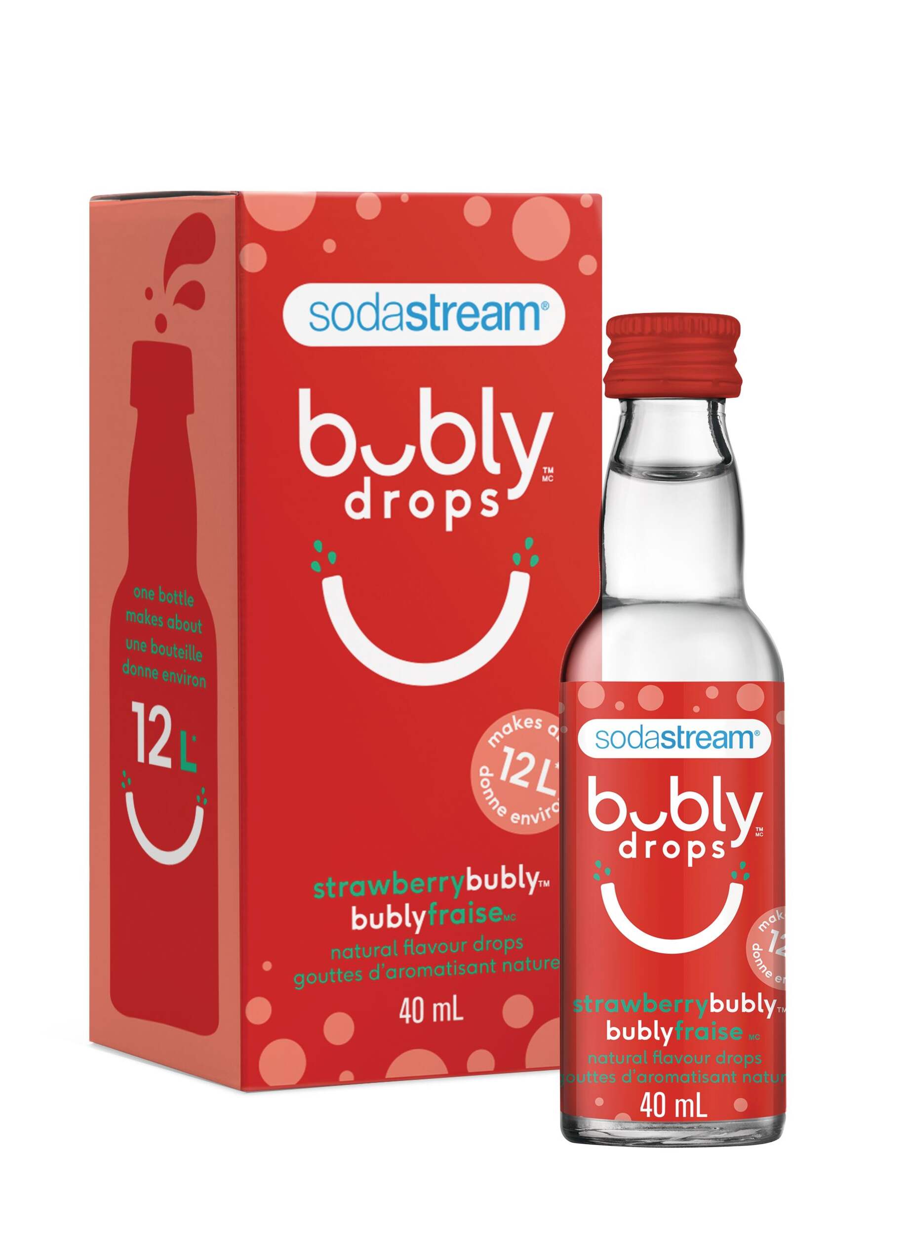 Donnez à votre eau du robinet une saveur de fraise sans calories ni sucre. Il suffit d'ajouter quelques gouttes Bubly MC à votre eau pétillante de SodaStream MC pour environ 12 litres d'éclat de fraises. Façon simple et amusante de savourer de l'eau pétillante aux fraises à la maison quand vous le voulez. Il suffit de laisser tomber, de presser et d'ajouter de l'éclat à vos boissons fraîches aux fraises sans avoir à en enlever l'excès.