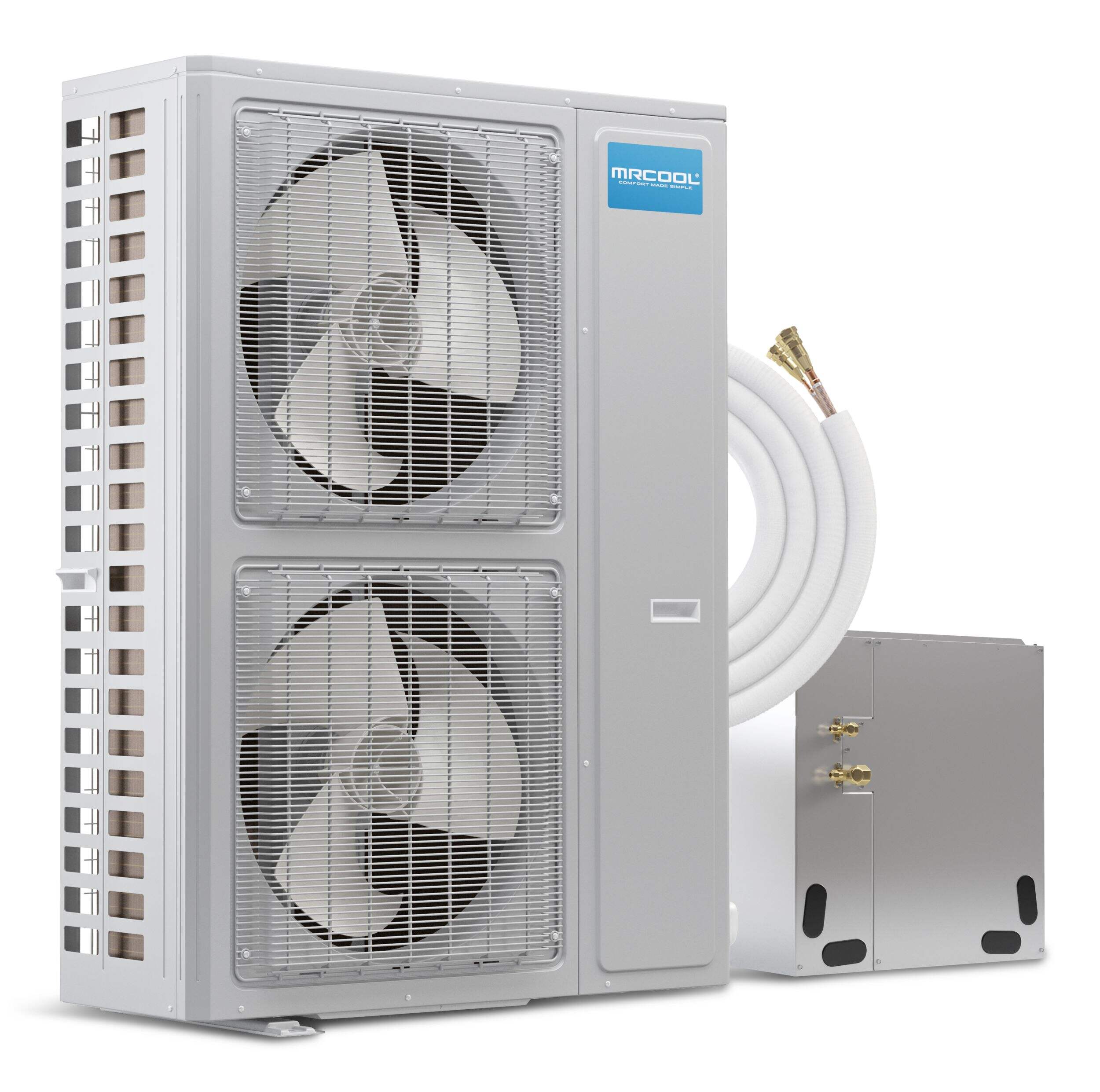 Condensateur climatiseur bibloc central MRCOOL Universal, 4 t, 18 SEER qui est un modèle mince offrant forme et fonctionnalité