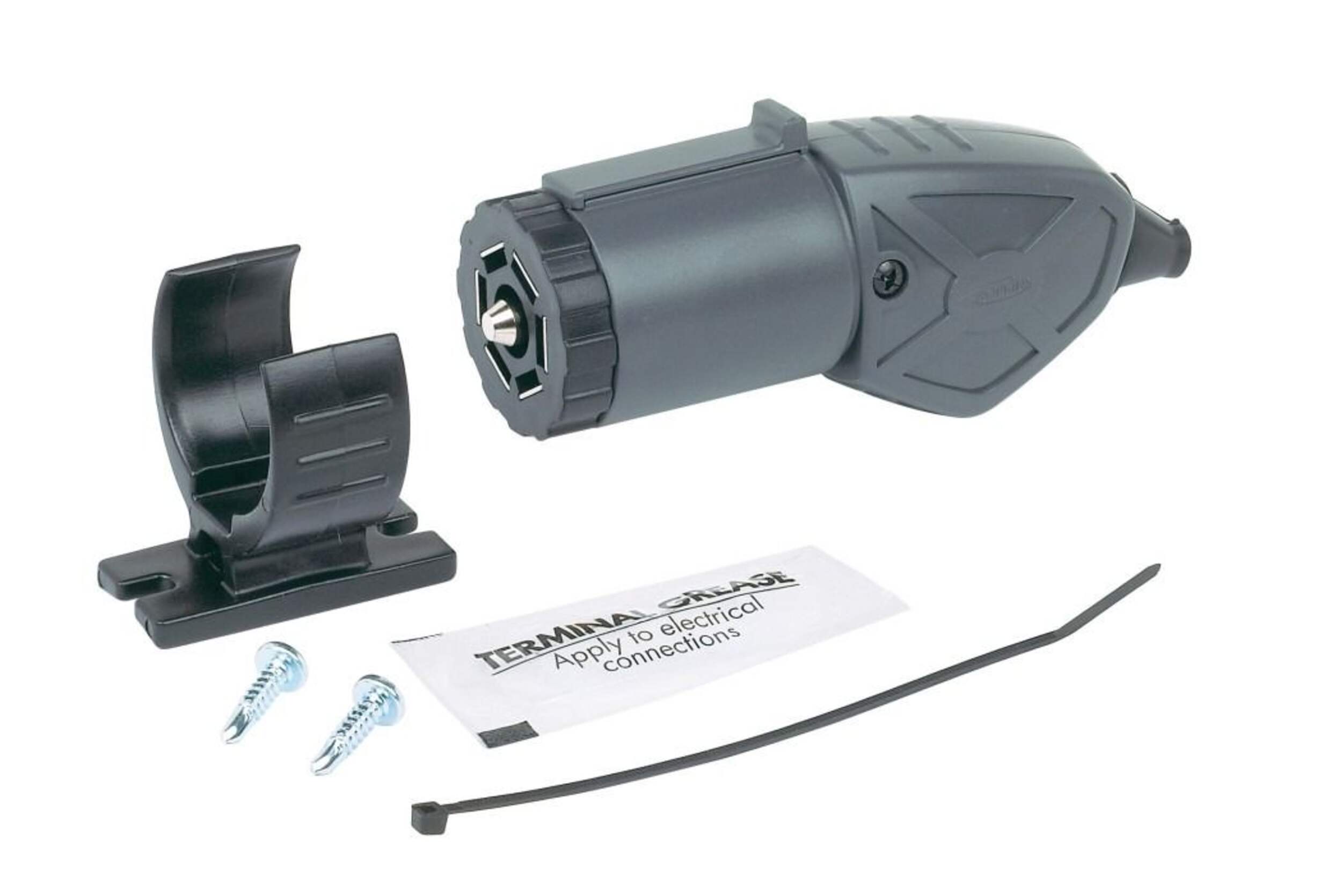 Le connecteur VR à lame à 7 voies Endurance MC est conçu pour se connecter aux grandes remorques et il est construit pour durer. Sa poignée-pistolet pratique et sa forme résistante aux intempéries en font un outil facile à manipuler. Un support de montage est fourni pour le protéger lorsqu'il n'est pas utilisé.