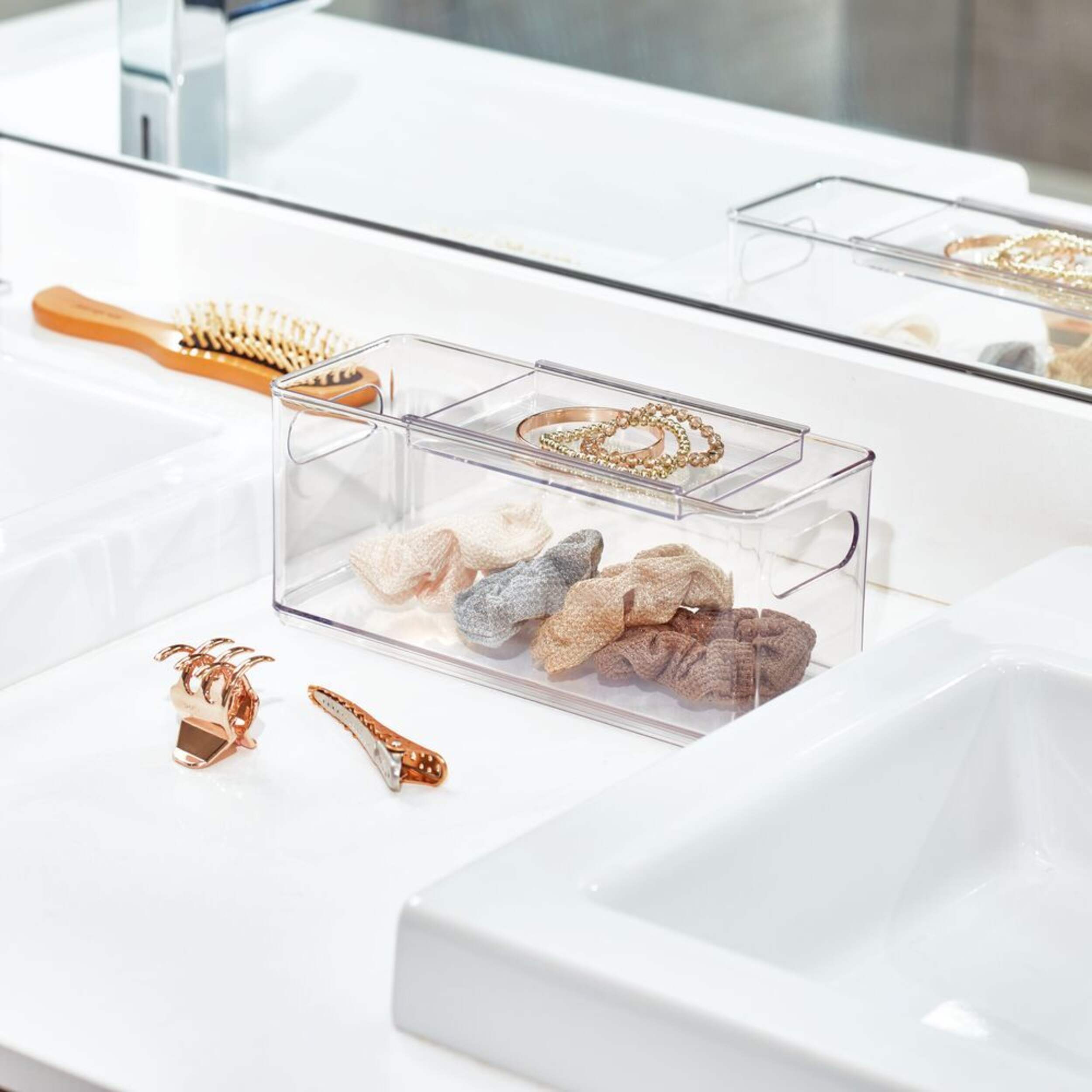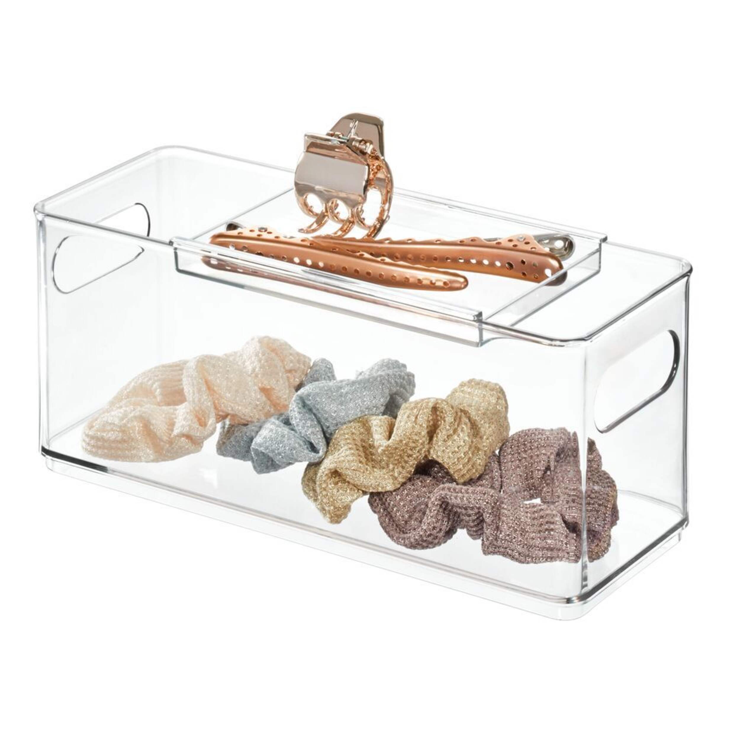 Contenant The Home Edit par iDESIGN, accessoires cheveux avec plateau coulissant en plastique durable