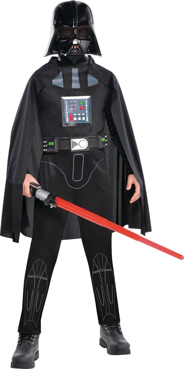 Costume de Darth Vader de Star Wars pour enfants comprenant une combinaison extensible avec des détails imprimés et une cape noire