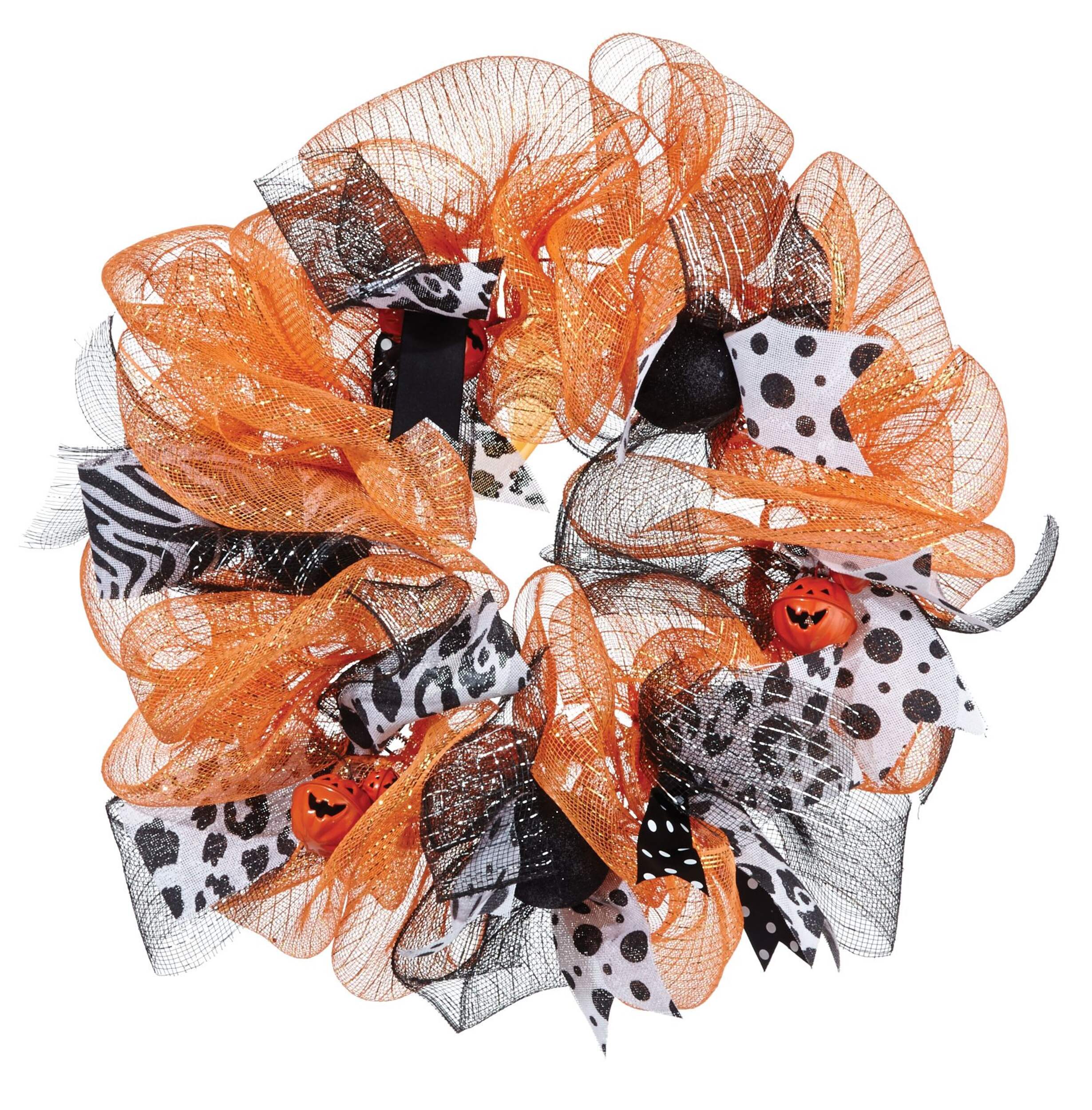 Couronne en filet d'Halloween noir et orange, différents pictogrammes d'Halloween