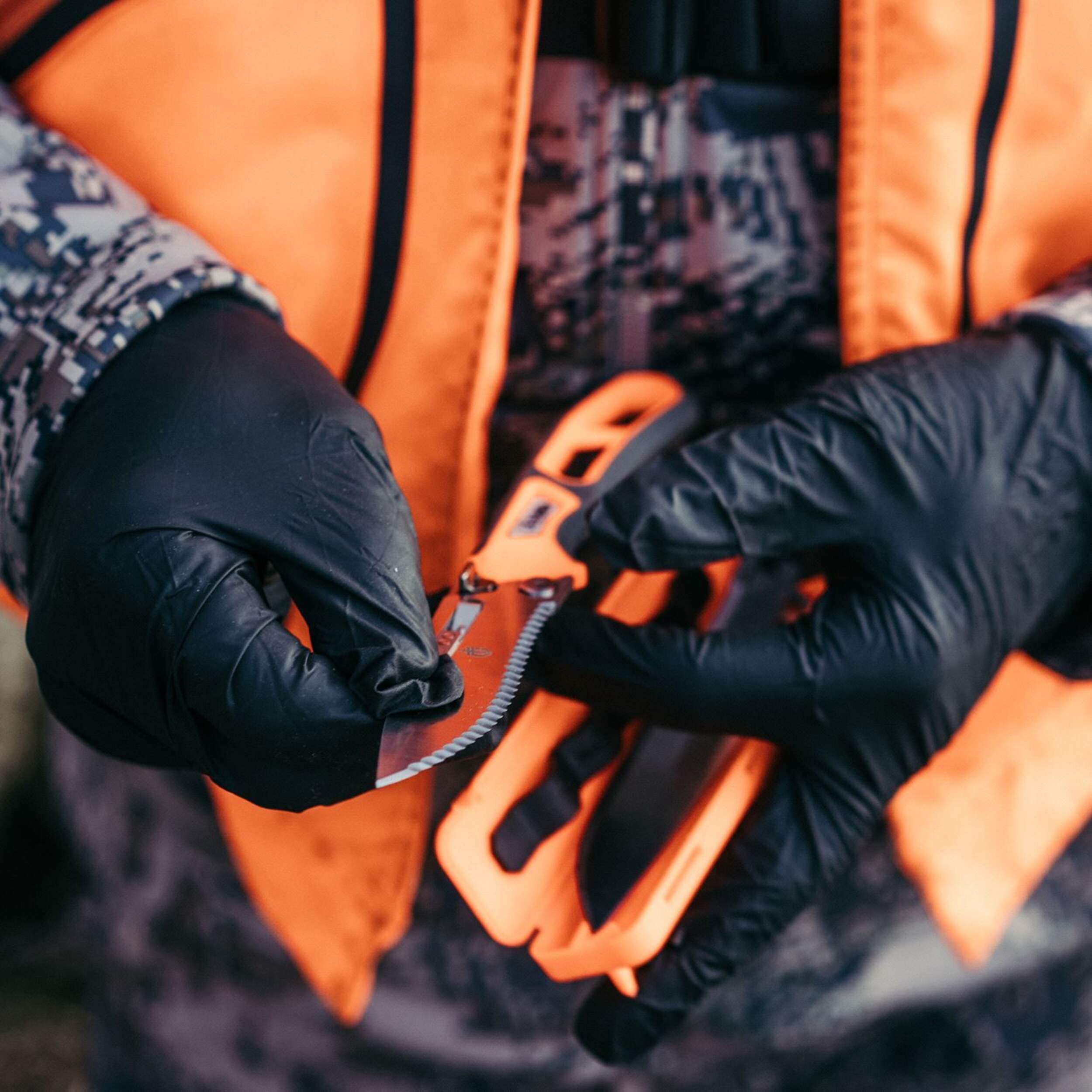 Comprend une boîte silencieuse de transport, dotée d’un rembourrage en silicone pour empêcher les lames de faire du bruit pendant la chasse