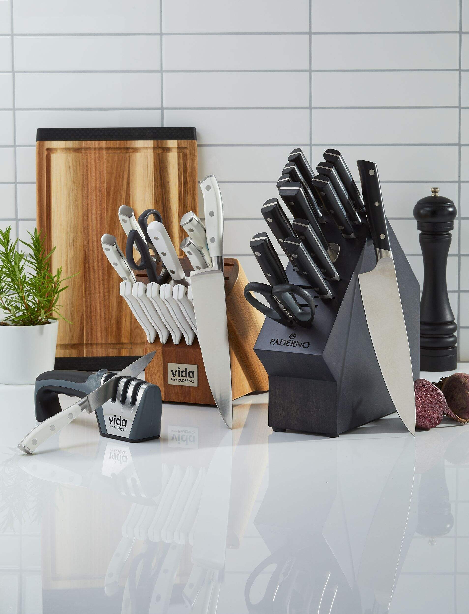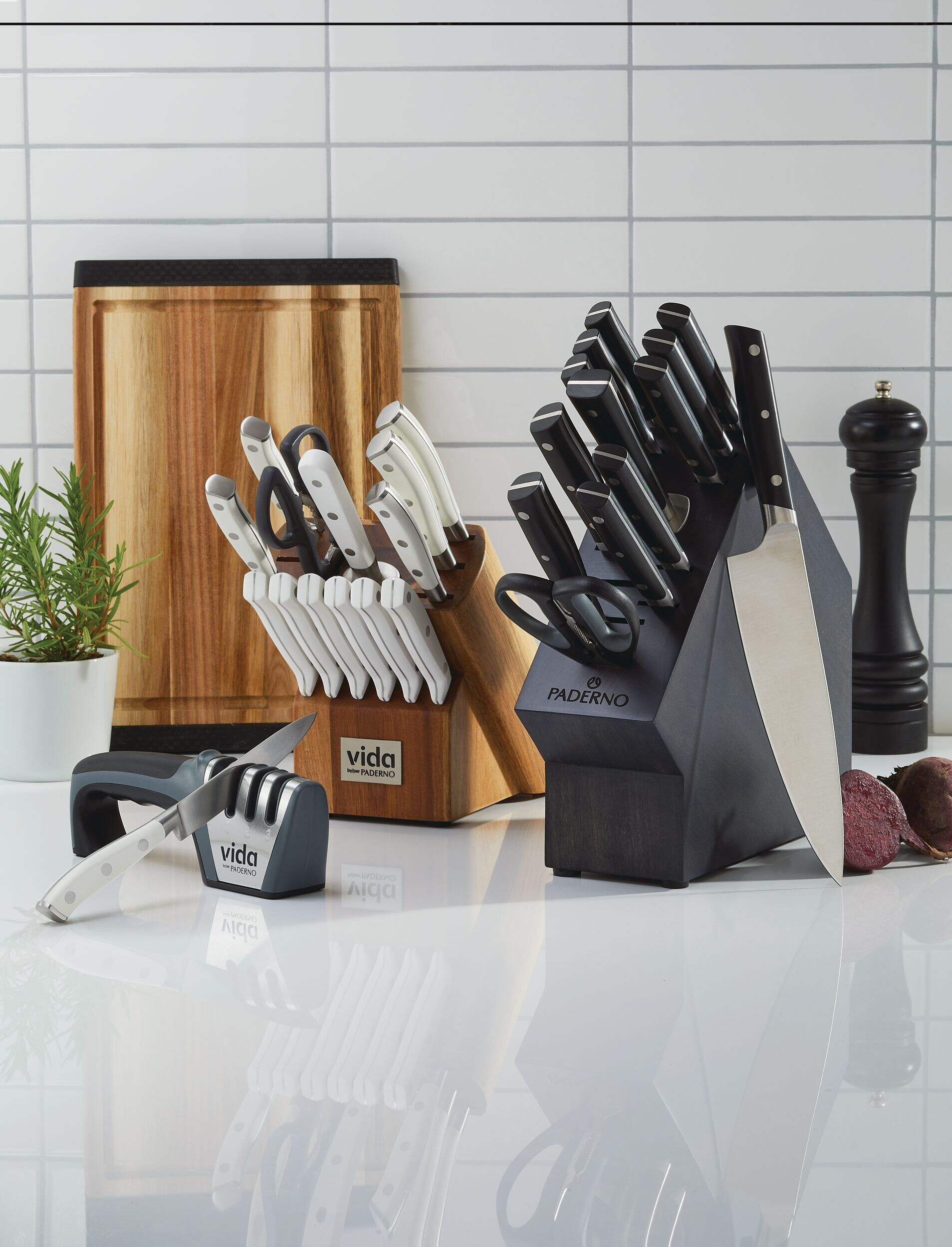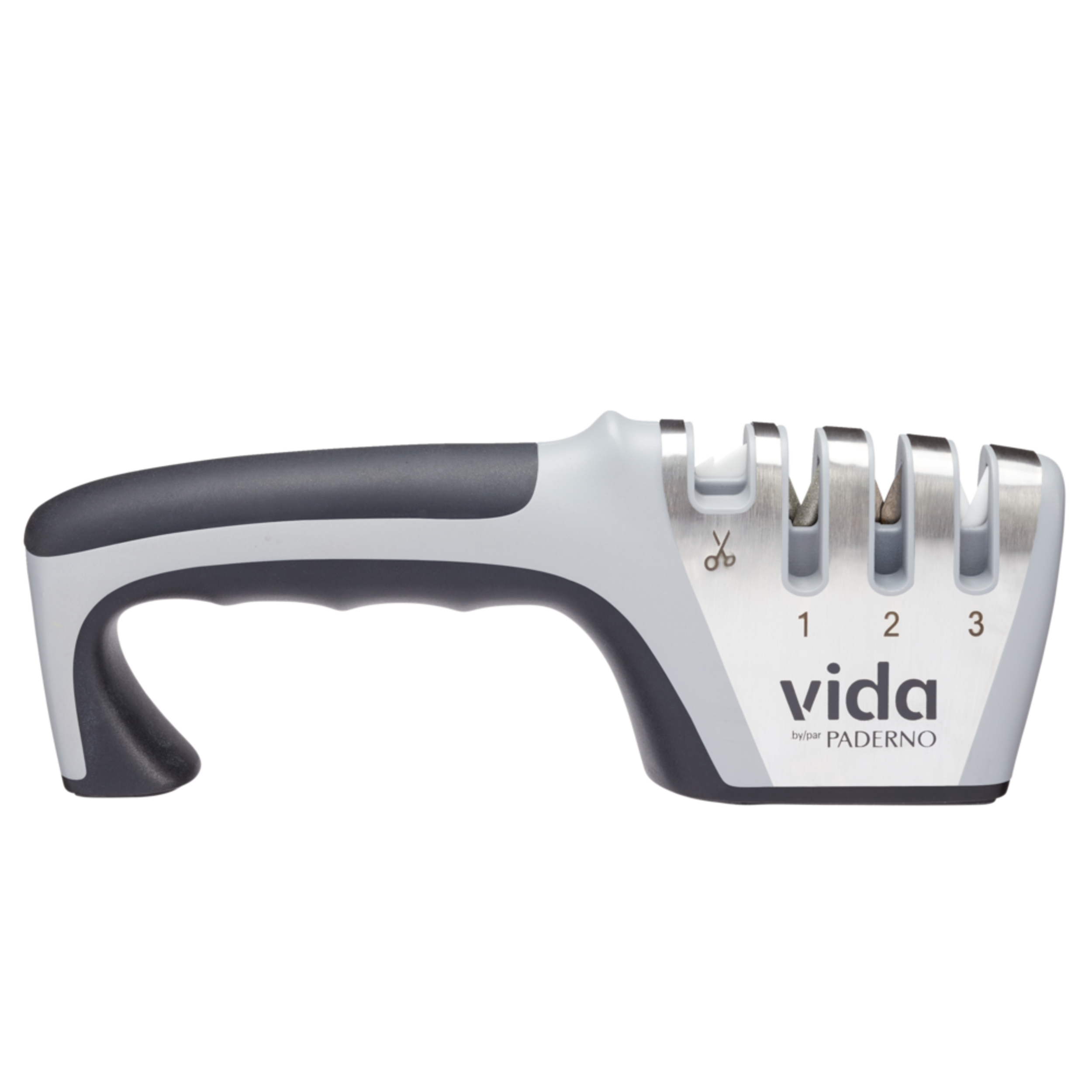 Couteau et affûteur 4-en-1 Vida by PADERNO proposant un nouveau concept de blocage de sécurité