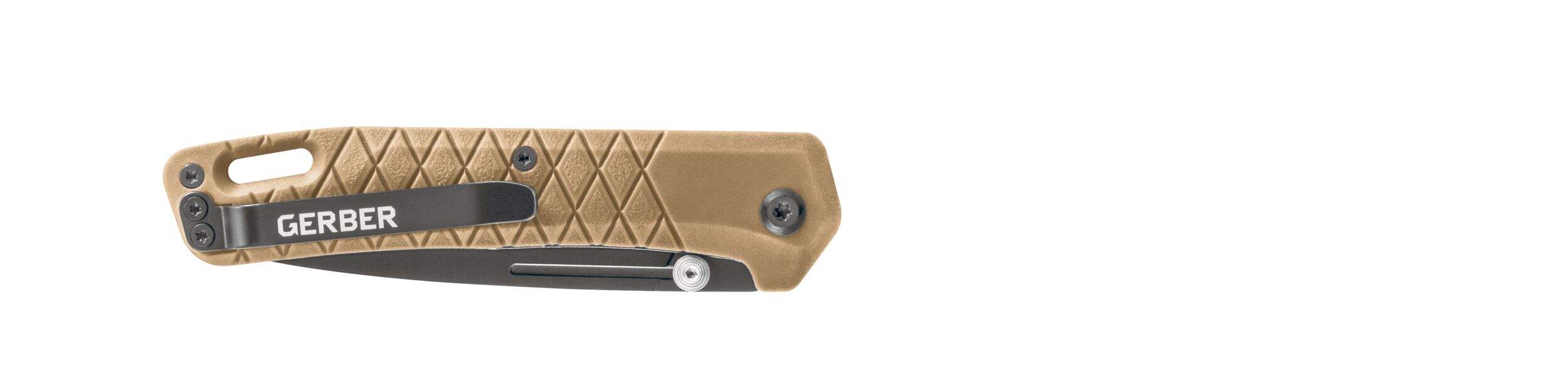 Couteau pliant Gerber Zilch à poignée brune qui se présente sous la forme d'un couteau pliant léger conçu pour se glisser dans votre poche et ne plus vous déranger