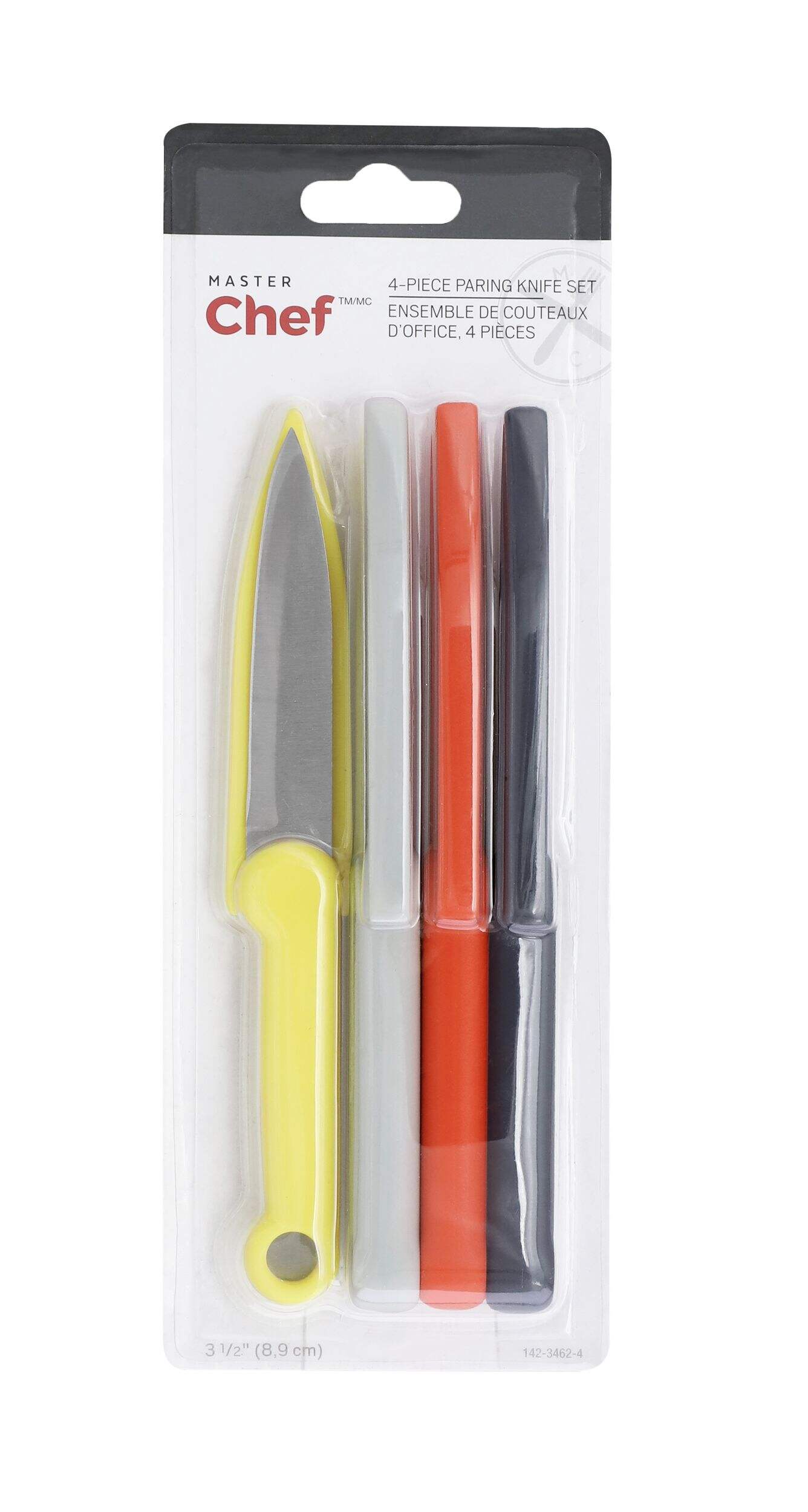 Égayez votre cuisine avec les couteaux d'office MASTER Chef. Ces couteaux codés par couleur sont conçus pour la commodité et pour aider à réduire le risque de contamination croisée. Faits en acier inoxydable, ils comprennent des couvercles encliquetables qui protègent les lames et préservent leur tranchant, garantissant un rangement sécuritaire. Avec des poignées confortables, ces couteaux rendent les tâches de hachage faciles et sans effort.