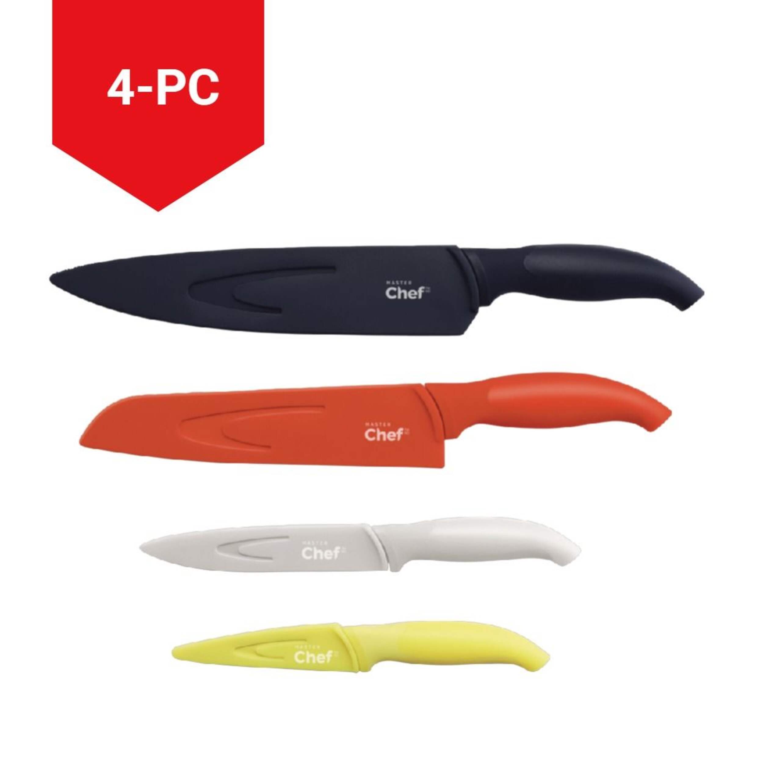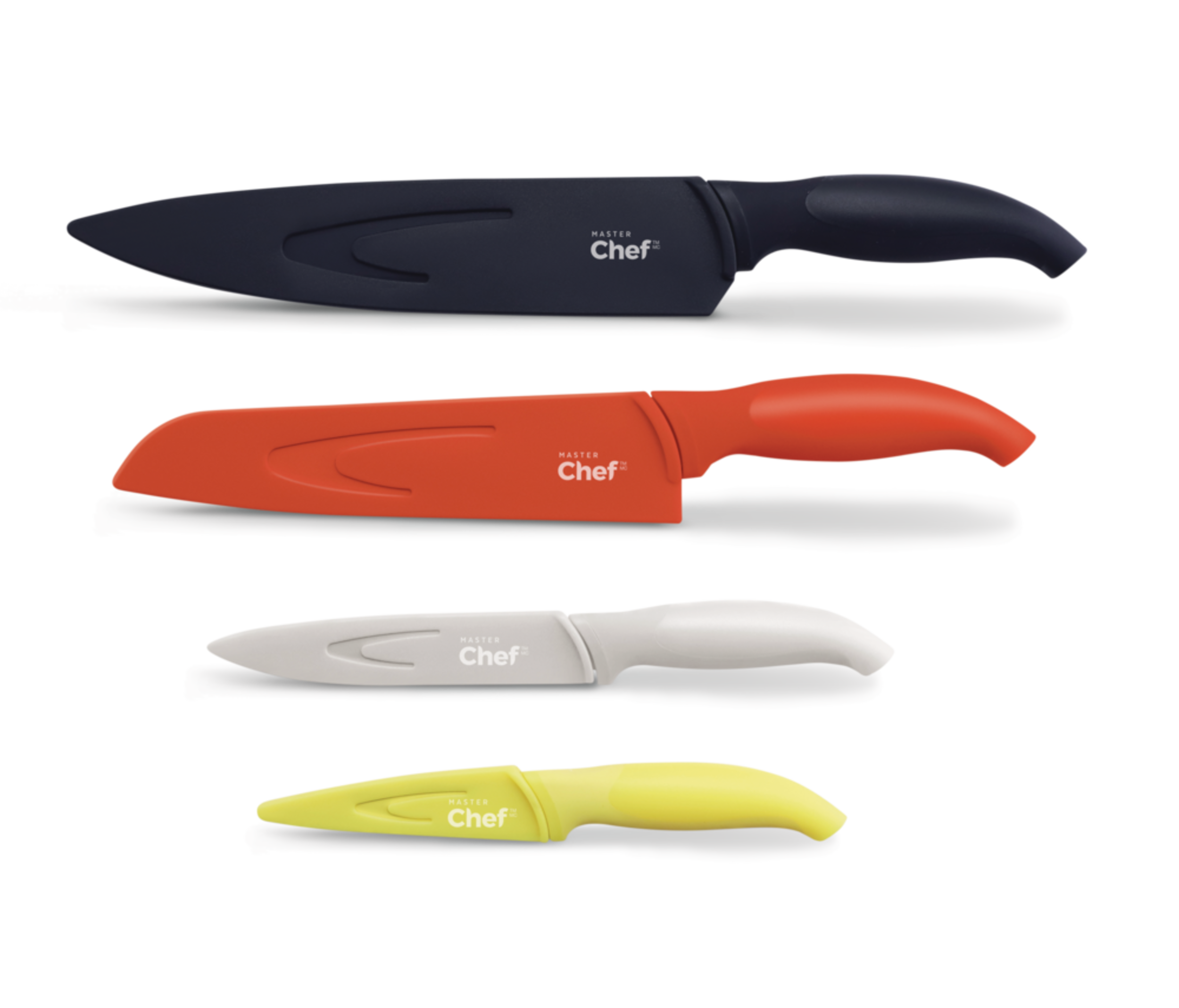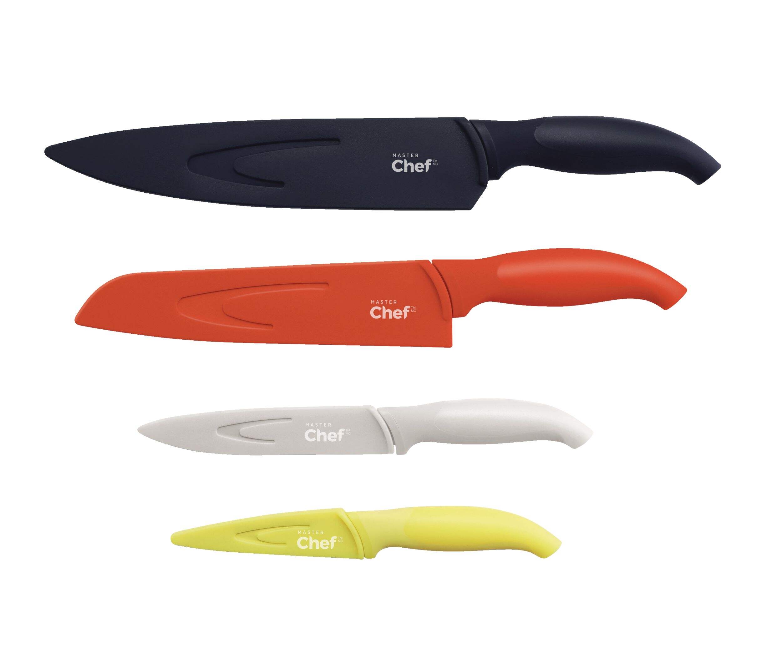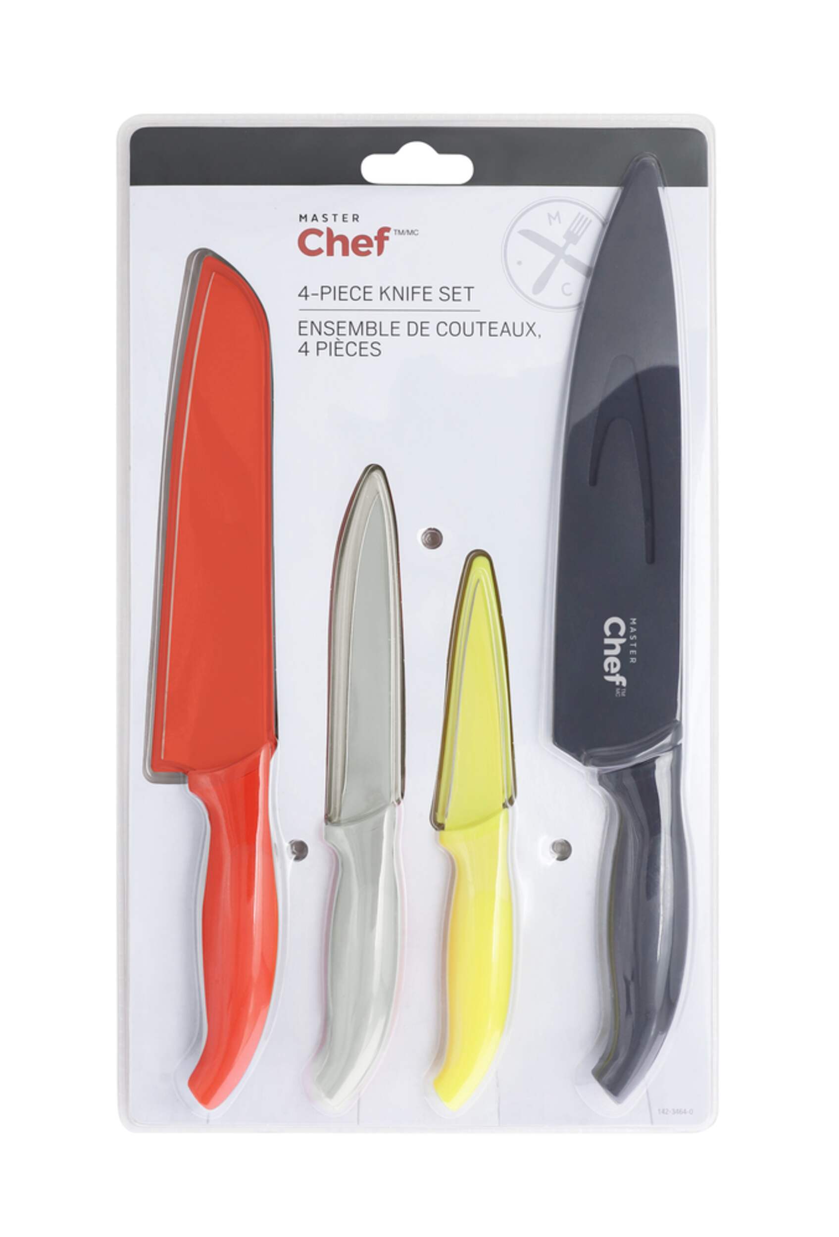 Ces couteaux en acier inoxydable MASTER Chef en paquet de 4 offrent précision et durabilité pour vos tâches culinaires. Dotés de lames en acier inoxydable de grande qualité, ces couteaux sont parfaits pour trancher, hacher et couper en dés une variété d'ingrédients. Les étuis protecteurs inclus assurent un rangement sécuritaire, tandis que les poignées ergonomiques offrent une prise confortable pour une coupe efficace. Chaque couteau va au lave-vaisselle, ce qui facilite le nettoyage et le maintien du tranchant après une utilisation répétée.
