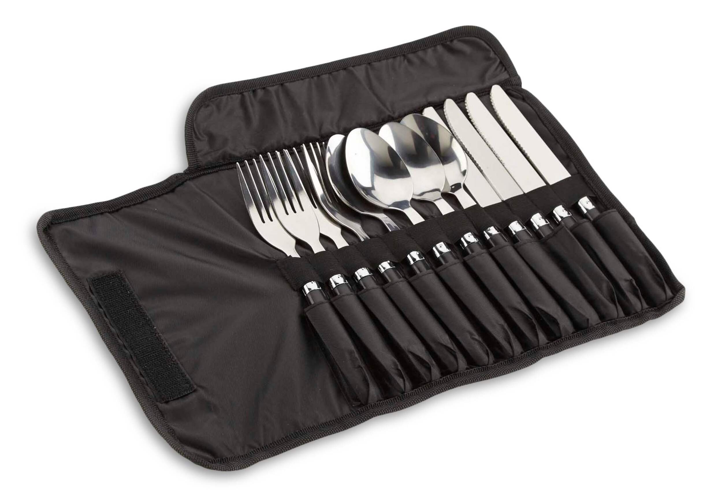 Transportez vos ustensiles au camping en toute simplicité avec ce service de couverts en inox Outbound. Ce service de couverts en inox est doté de poignées décoratives en plastique et comprend des couverts réutilisables parfaits pour le camping. Le service de couverts de 12 pièces comprend des fourchettes, des couteaux et des cuillères, et est offert dans un étui de transport réutilisable pour le rangement et le transport. Ces couverts vont au lave-vaisselle et sont parfaits pour le chalet ou le camping.