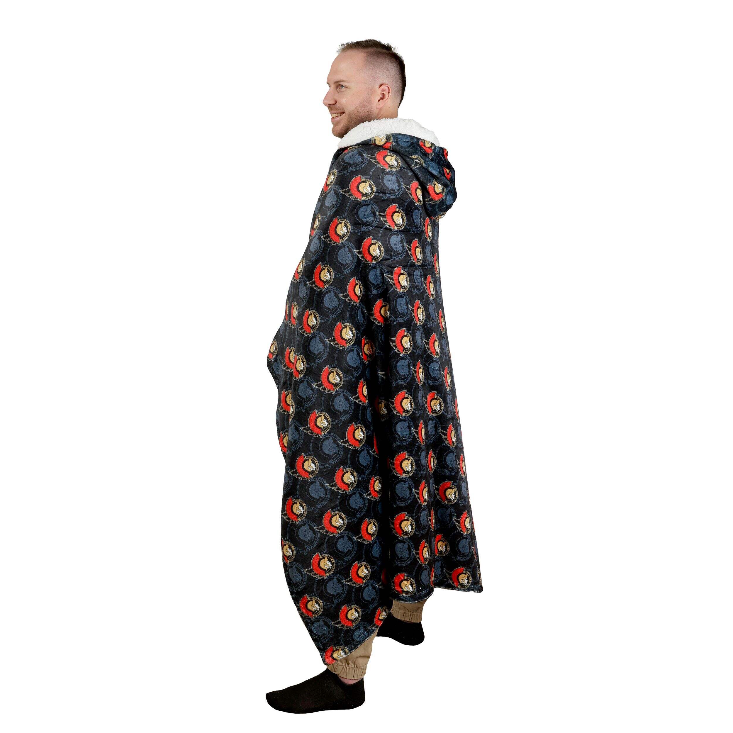 Couverture à capuchon des Sénateurs d’Ottawa avec revers en sherpa qui combine la chaleur d’une couverture et le confort de votre chandail en molleton ou peignoir préféré