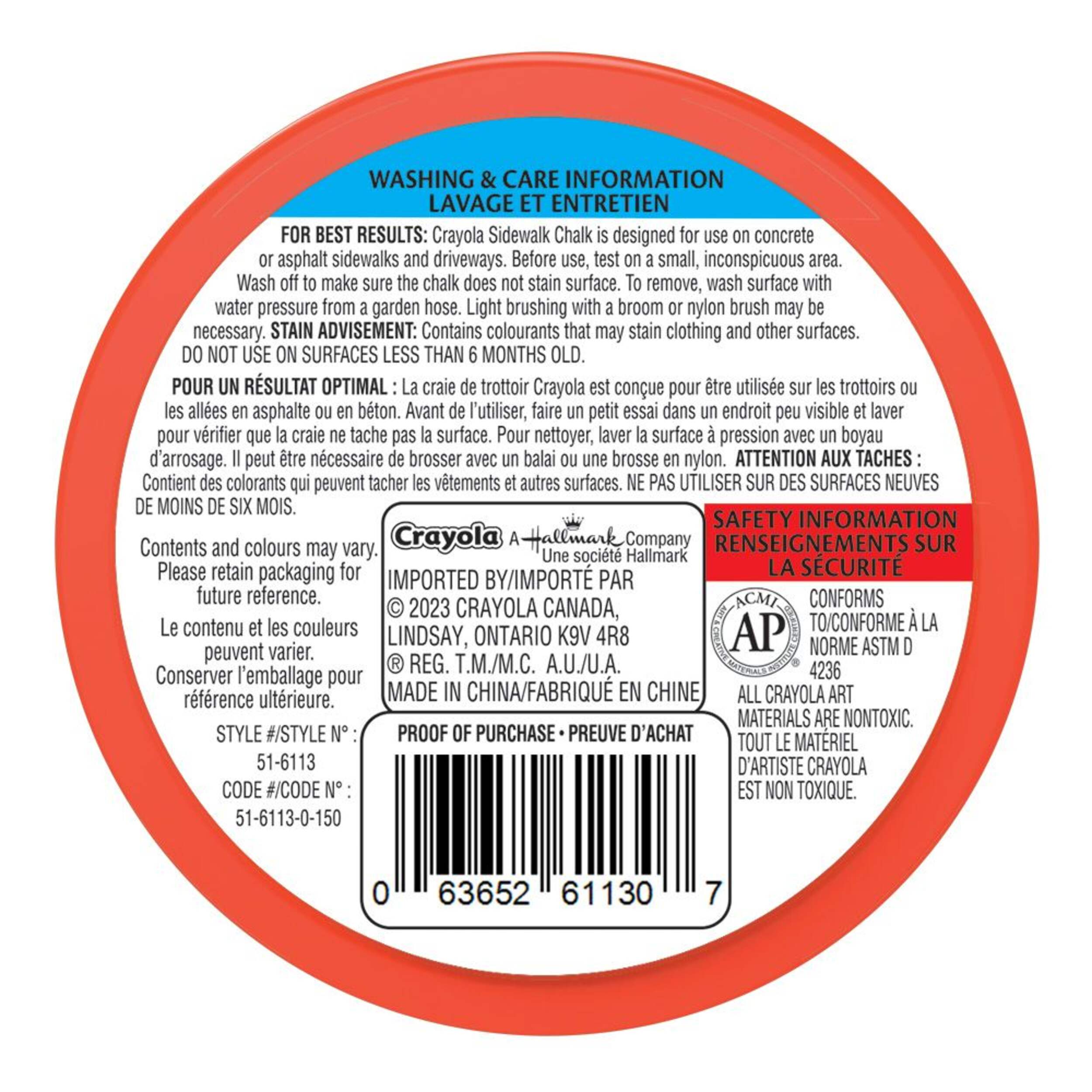 La craie de trottoir Crayola Superchalk Kids' Bright & Bold Colours Outdoor Sidewalk Chalk offre un trio d'options de coloriage pour un jeu imaginatif sans fin. Les enfants peuvent créer des oeuvres d'art à l'extérieur avec des lignes épaisses, moyennes ou minces en utilisant différents angles de la rondelle. Cette craie pour trottoir est conçue pour durer trois fois plus longtemps que les craies traditionnelles. De plus, sa formule lavable facilite le nettoyage après une journée de plaisir. Il convient aux enfants âgés de 4 ans et plus.