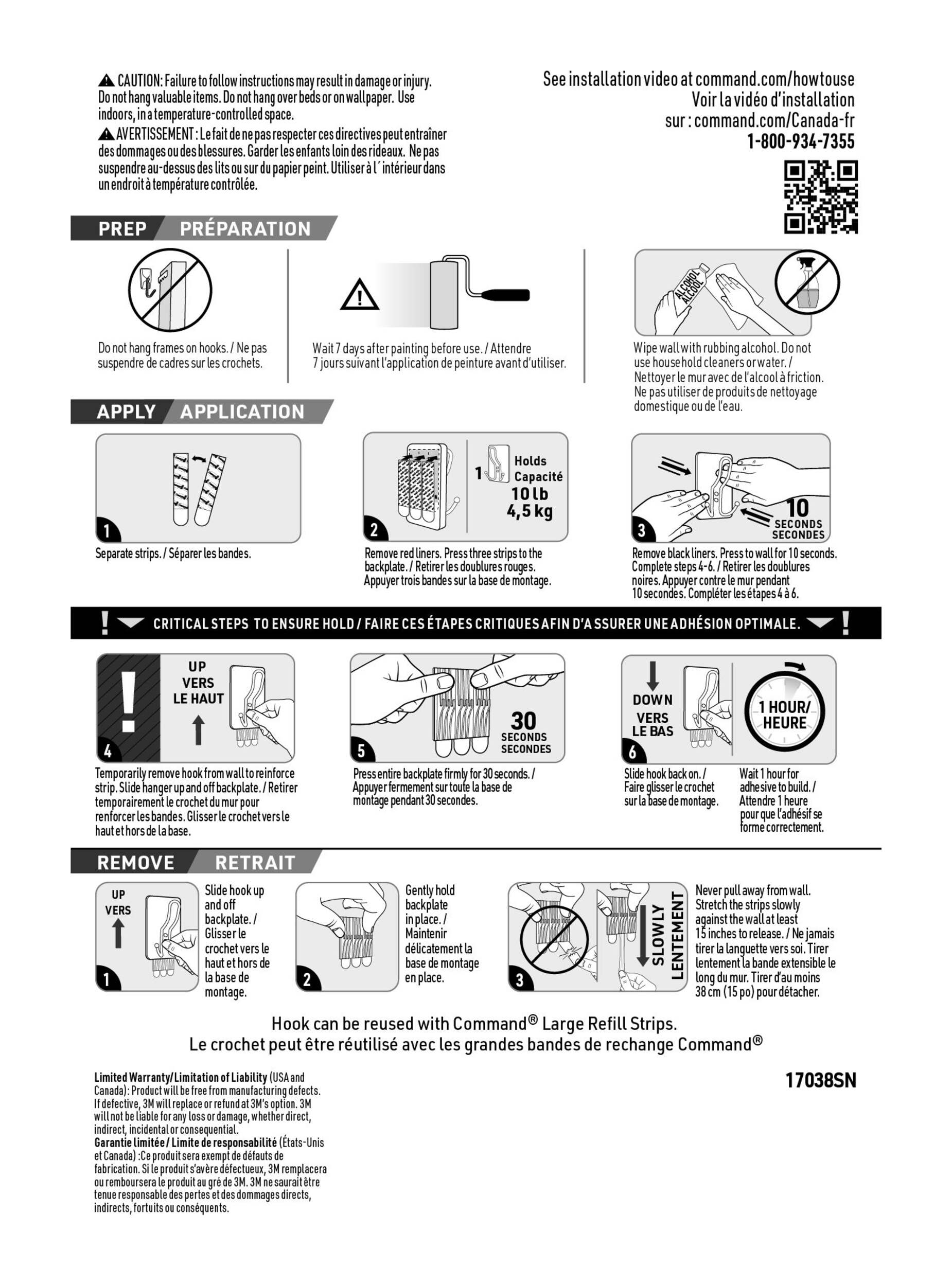Tient fermement sur une variété de surfaces intérieures, y compris les murs peints, le bois fini, le verre, les carreaux, le métal, et d'autres surfaces lisses