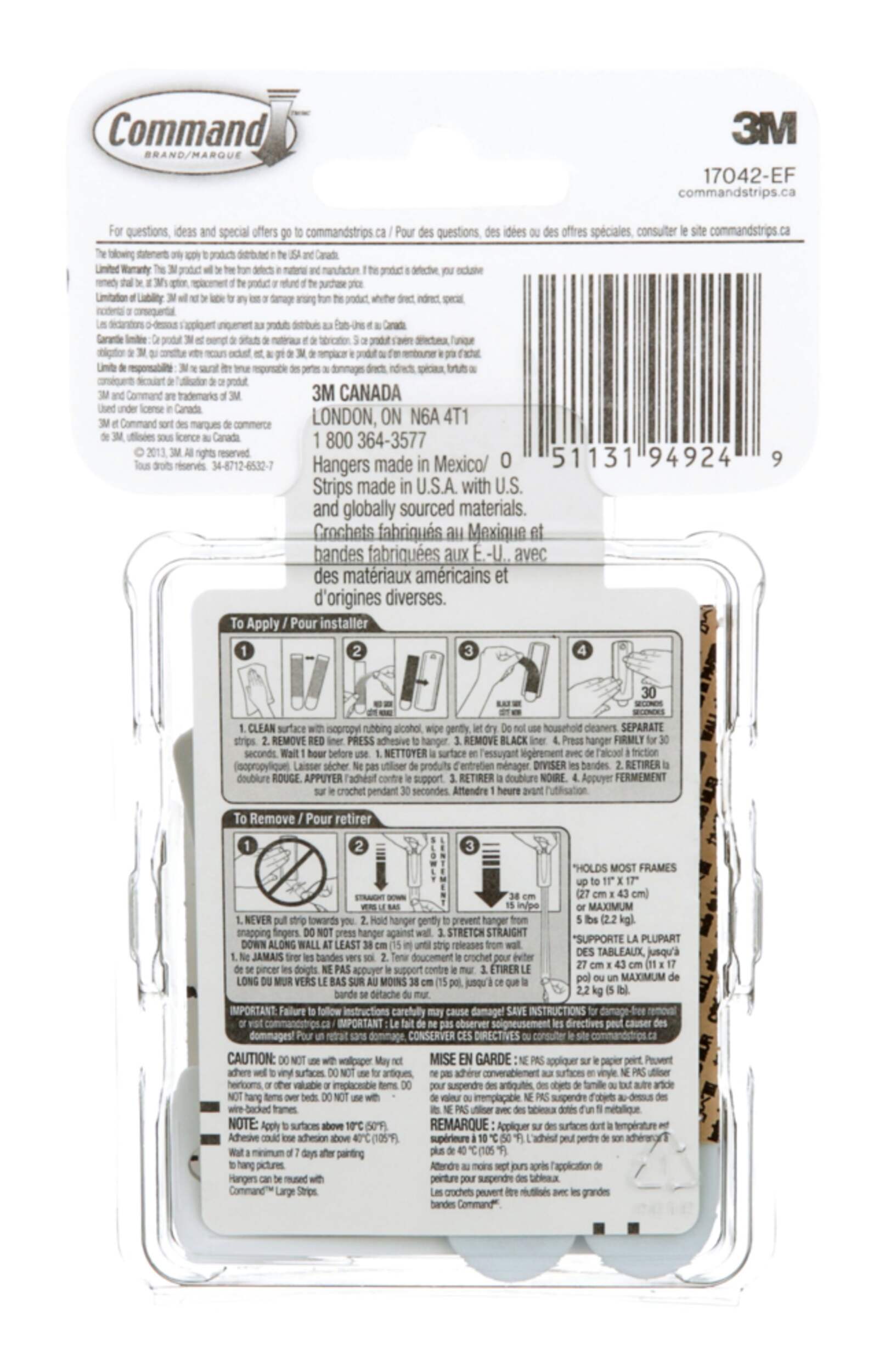 Crochets adhésifs en dents de scie pour tableaux Command s'installent sans dommages pour suspendre des objets