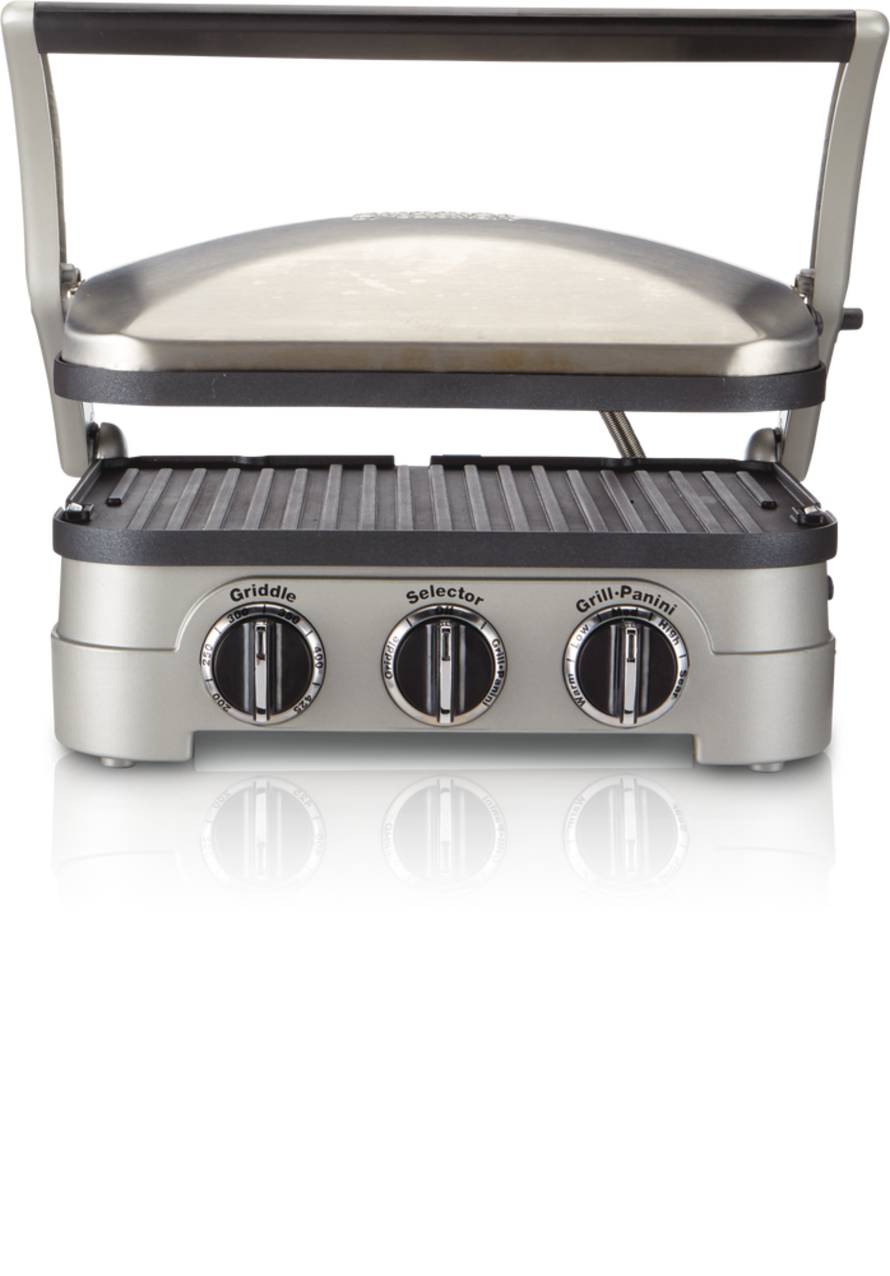 Cuisinart MD Griddler 5-en-1 qui est un appareil de cuisine très polyvalent qui combine la fonctionnalité d'une presse à panini, d'un gril et d'un four à sandwich, offrant une solution pratique pour diverses tâches de cuisson. Plaques antiadhésives amovibles qui facilitent le nettoyage et commandes de température réglables qui assurent des résultats de cuisson parfaits à tout coup. Que ce soit pour griller de la viande, presser des paninis ou faire des sandwichs, ce Griddler en acier inoxydable offre la flexibilité et la précision dont vous avez besoin pour les repas quotidiens. Modèle élégant et construction durable qui en font un ajout élégant à toute cuisine, assurant à la fois forme et fonctionnalité.