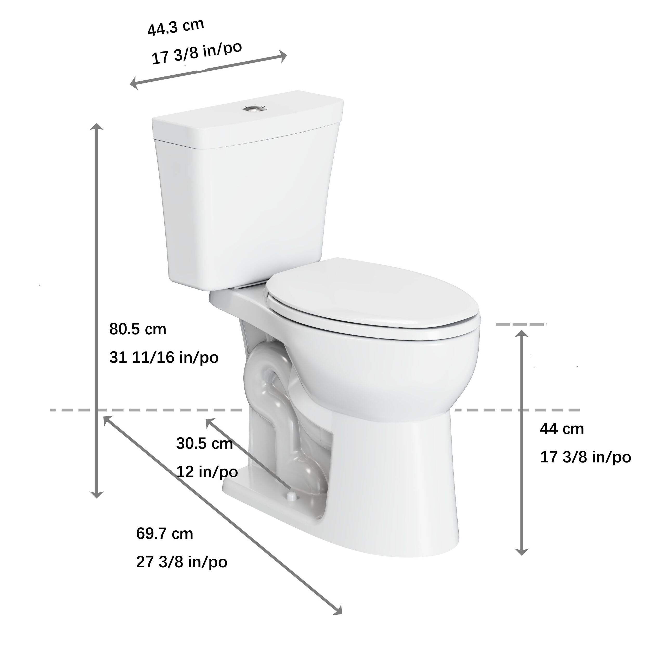 | Indicateur de hauteur totale de la cuvette (po) | 17 1/8 po |