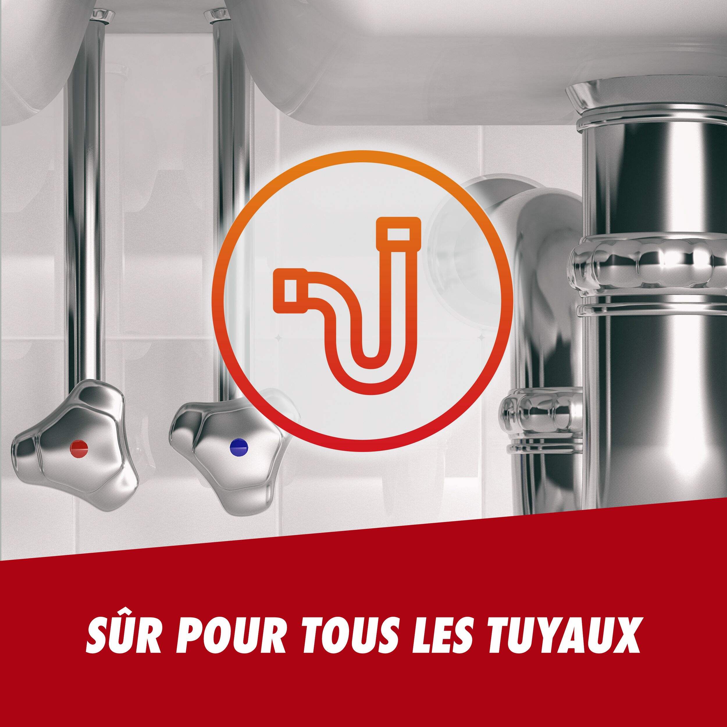 La formule épaisse de javellisant du débouche-tuyau Drano Max en gel coupe directement l'eau stagnante et adhère aux bouchons les plus tenaces pour les dissoudre rapidement. Il est idéal pour enlever les cheveux, les résidus de savon et les autres gros bouchons. Sans danger pour les broyeurs à déchets, la salle de bain, la cuisine et les autres drains, comme les cuves de lavage.