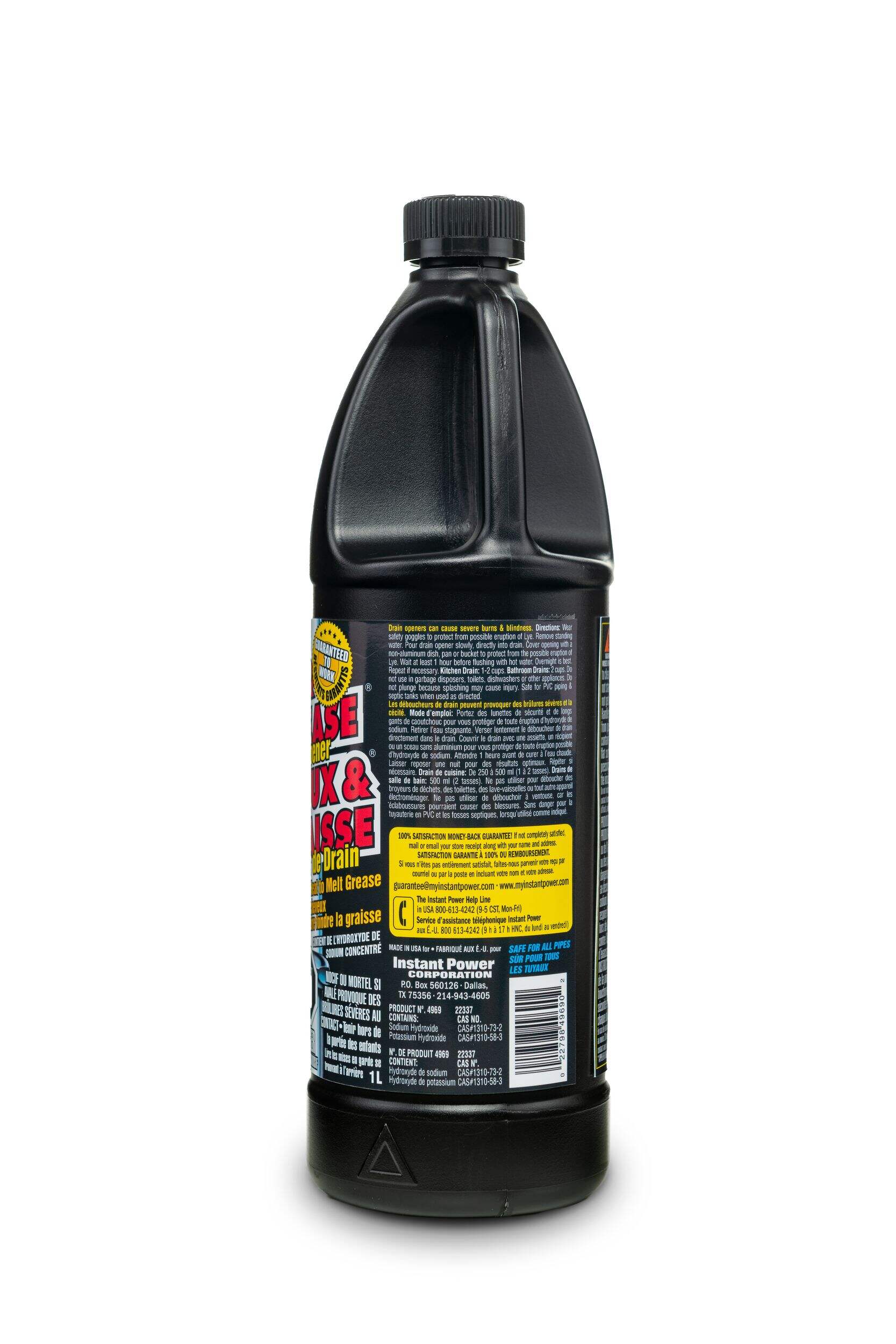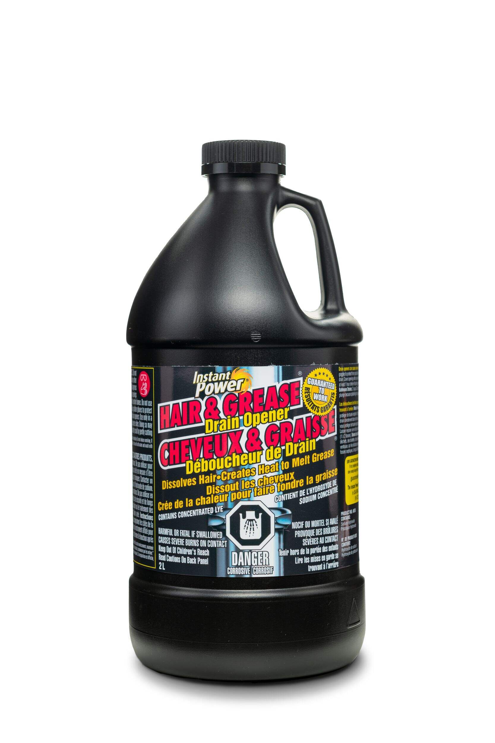 Le débouche-tuyaux Instant Power pour cheveux et graisse est le nettoyant liquide non acide le plus puissant sur le marché. Ce débouche-tuyau à action rapide dissout les bouchons de cheveux et fait fondre les accumulations de graisse grâce à sa formulation à 2 types d'hydroxydes qui crée de la chaleur pour déboucher rapidement les drains. Sans danger pour tous les tuyaux et les fosses septiques, ce nettoyant ne contient pas d'acides agressifs ni d'ingrédients caustiques et agit rapidement sans laisser d'odeurs ni de fumées désagréables.