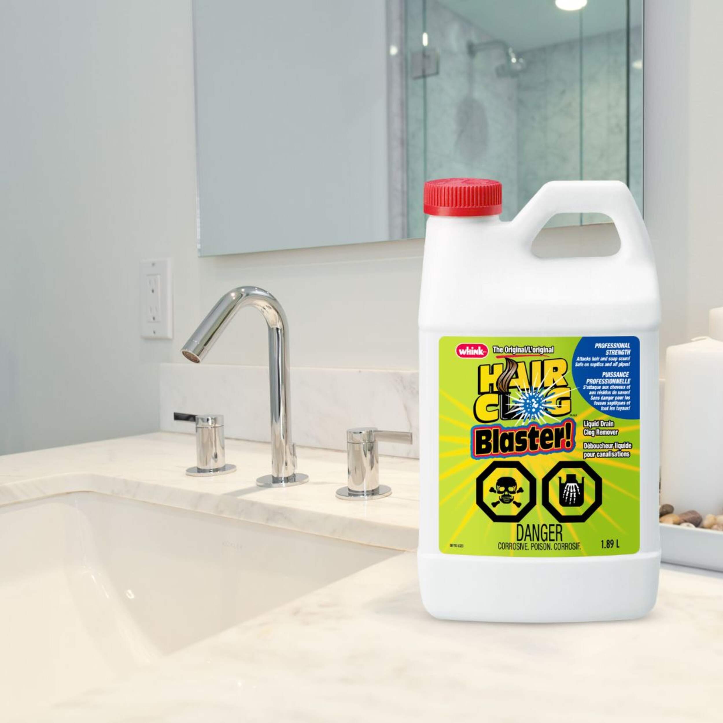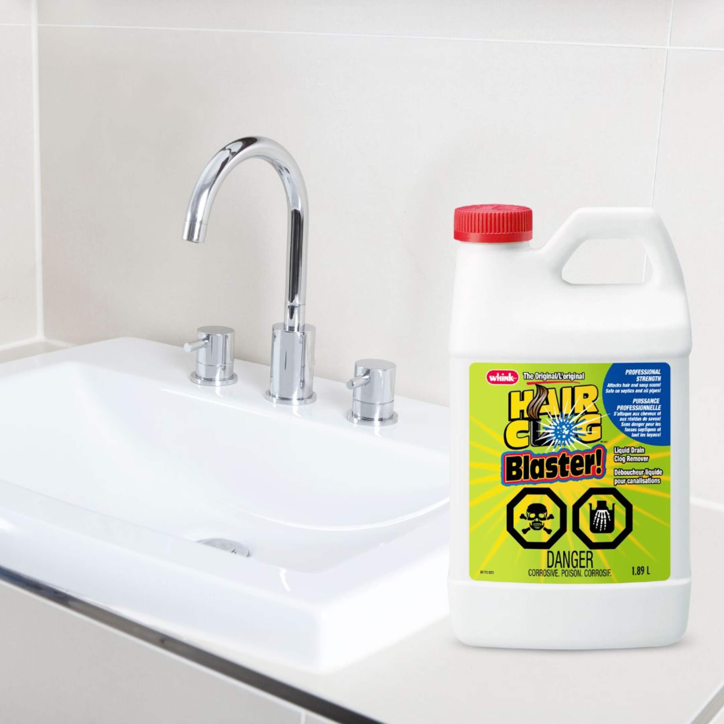 Déboucheur liquide pour bouchons de cheveux Whink Hair Clog Blaster qui consiste en un débouche-tuyau de salle de bain à action rapide conçu spécialement pour s'attaquer aux bouchons de cheveux et déboucher les tuyaux