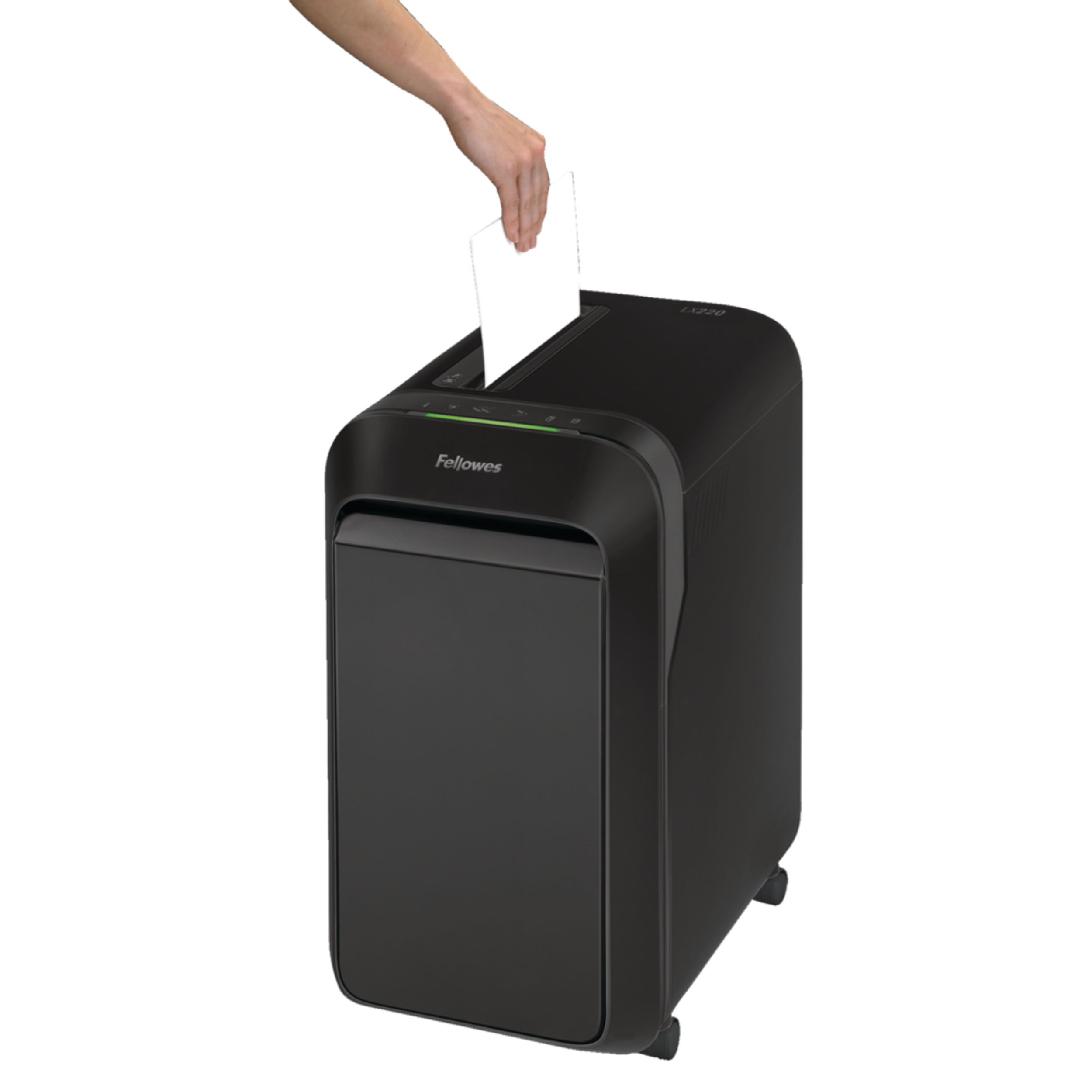Déchiqueteuse à coupe micro Fellowes Powershred LX220 à technologie réactive brevetée IntelliBarMC privilégie la sécurité maximale, l'efficacité et un fonctionnement 100 % sans bourrage