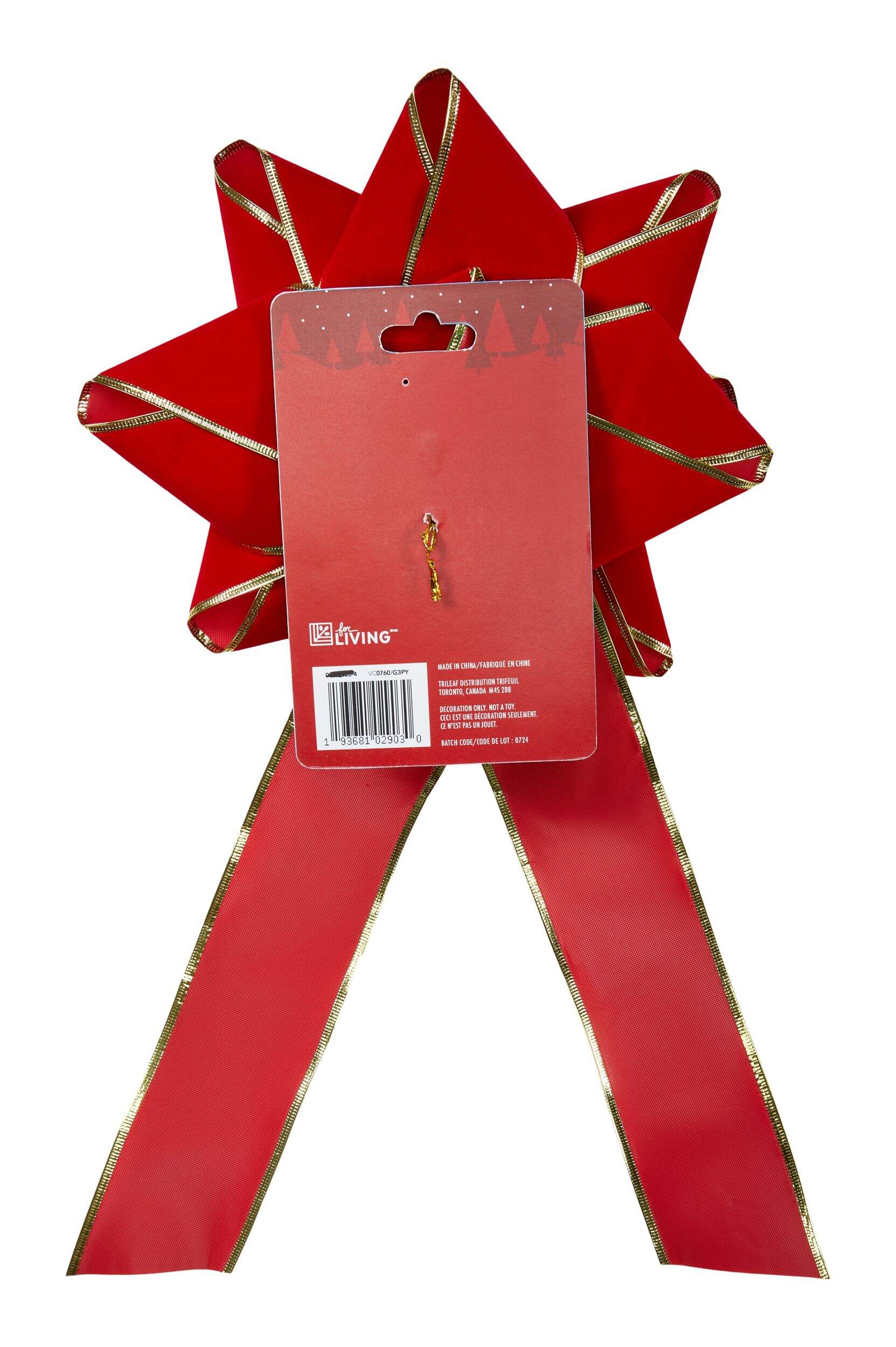 Noeuds à boucles multiples velours rouge et bord pressé or For Living qui ajoute une touche classique des fêtes à n'importe quelle pièce