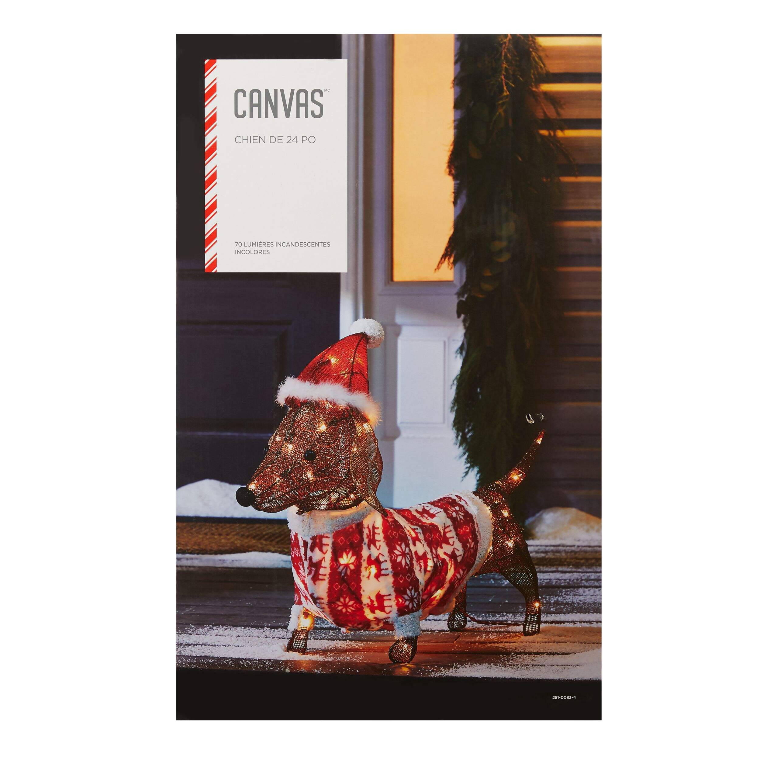 Illuminez votre maison ou votre jardin avec cette charmante décoration festive teckel CANVAS. Cette charmante figurine lumineuse est vêtue d'un chapeau de père Noël et d'un chandail de Noël en tissu et est prête à diffuser une lumière chaude et brillante sur le paysage de votre jardin ou dans votre salle familiale. Animal de compagnie idéal ne nécessitant pas d'entretien, il est doté de 70 lampes incandescentes qui créent une exposition éblouissante que les amis et les voisins adoreront. Ce décor de Noël entièrement assemblé s'installe rapidement grâce au matériel fourni.