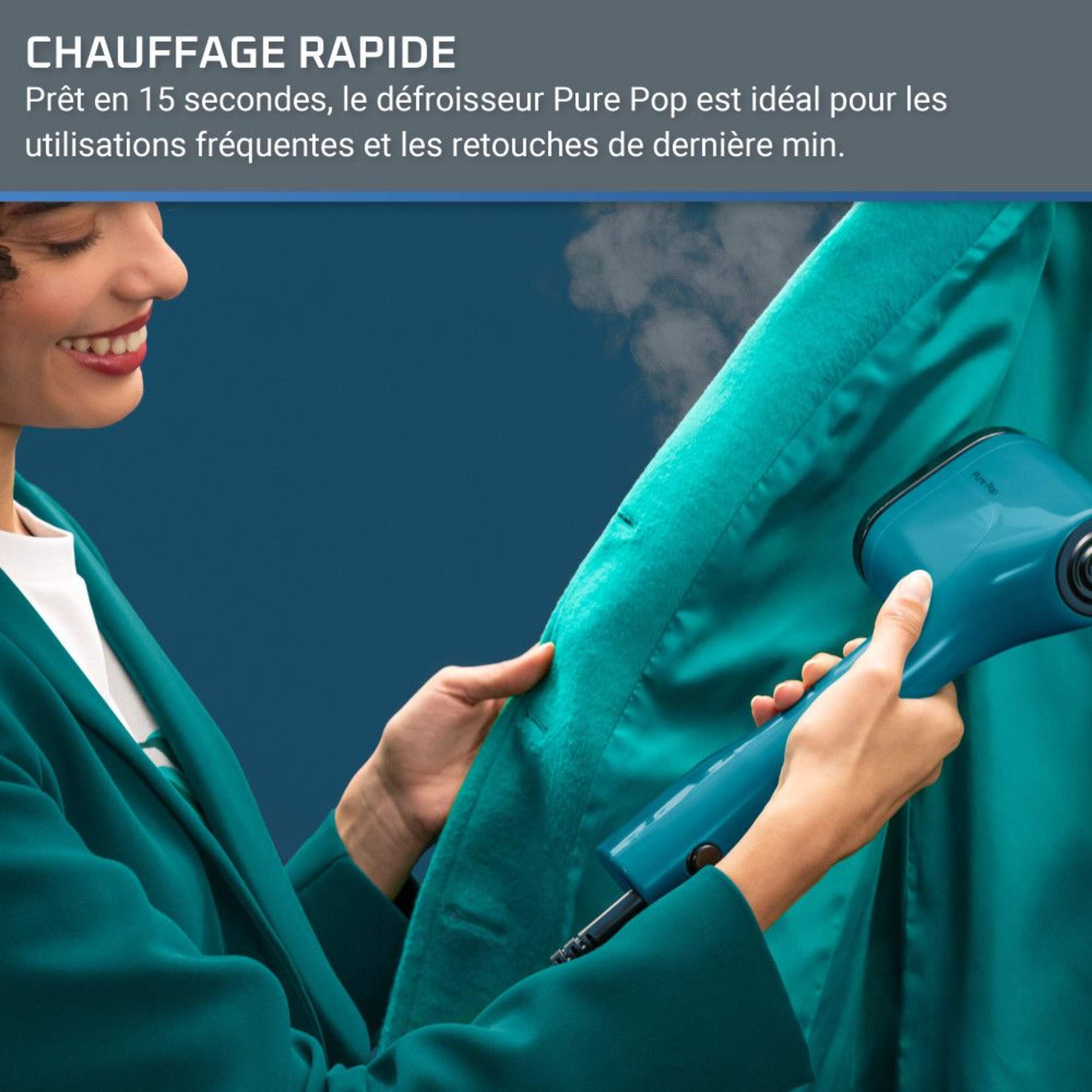 Rehaussez l'entretien de vos tissus avec ce défroisseur à vapeur portatif compact, conçu pour défroisser à la vapeur lors de vos déplacements, sans planche à repasser. Sa conception intuitive se réchauffe en moins de 15 secondes, ce qui facilite les retouches rapides. La fonction Pure Pop purifie et défroisse à la vapeur en un seul mouvement fluide, pour des résultats impeccables à tout coup. Le système de tampon réversible vous permet de passer facilement du côté en velours à l'autre pour repasser les tissus délicats à la vapeur et du côté antipeluche pour éliminer les poils et la charpie. Que ce soit pour rafraîchir votre garde-robe ou pour nettoyer des tissus résistants, ce défroisseur à vapeur assure un entretien rapide et efficace avec des résultats de qualité professionnelle.