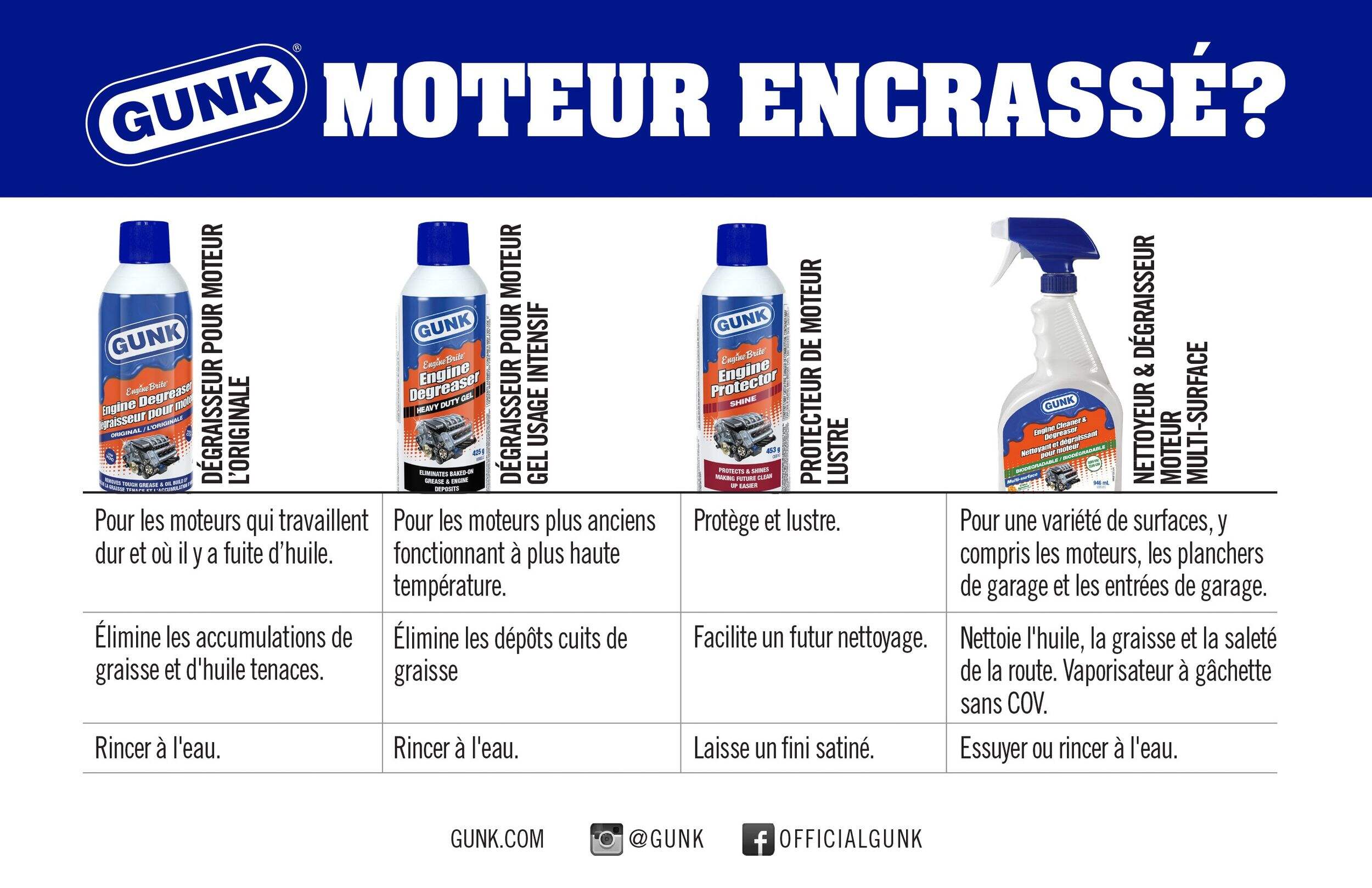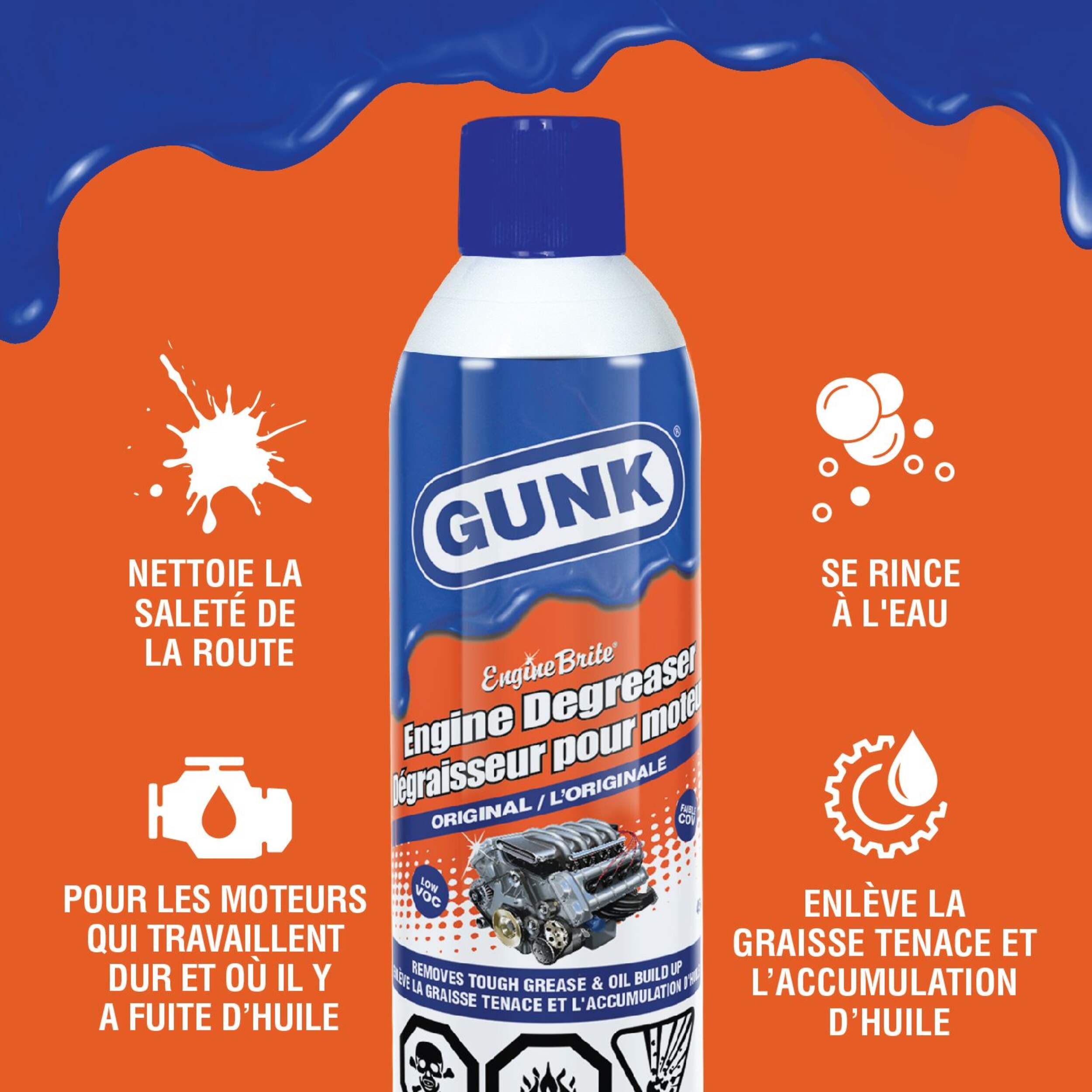 Le dégraissant pour moteur GUNK original est l'une de nos formules les plus populaires, elle est spécialement formulée pour les moteurs plus anciens et graisseux. Il offre un nettoyage en profondeur et une formule à action rapide. Gardez votre huile de coude pour d'autres travaux. Vaporisez simplement le dégraissant pour moteur GUNK original sur votre moteur, attendez 10 à 15 minutes, nettoyez-le au jet d'eau et le tour est joué! Utilisez le dégraissant pour moteur GUNK original pour les voitures, les camions, les tondeuses électriques, les VR, les VTT, vélos, équipements agricoles, tracteurs et plus encore!