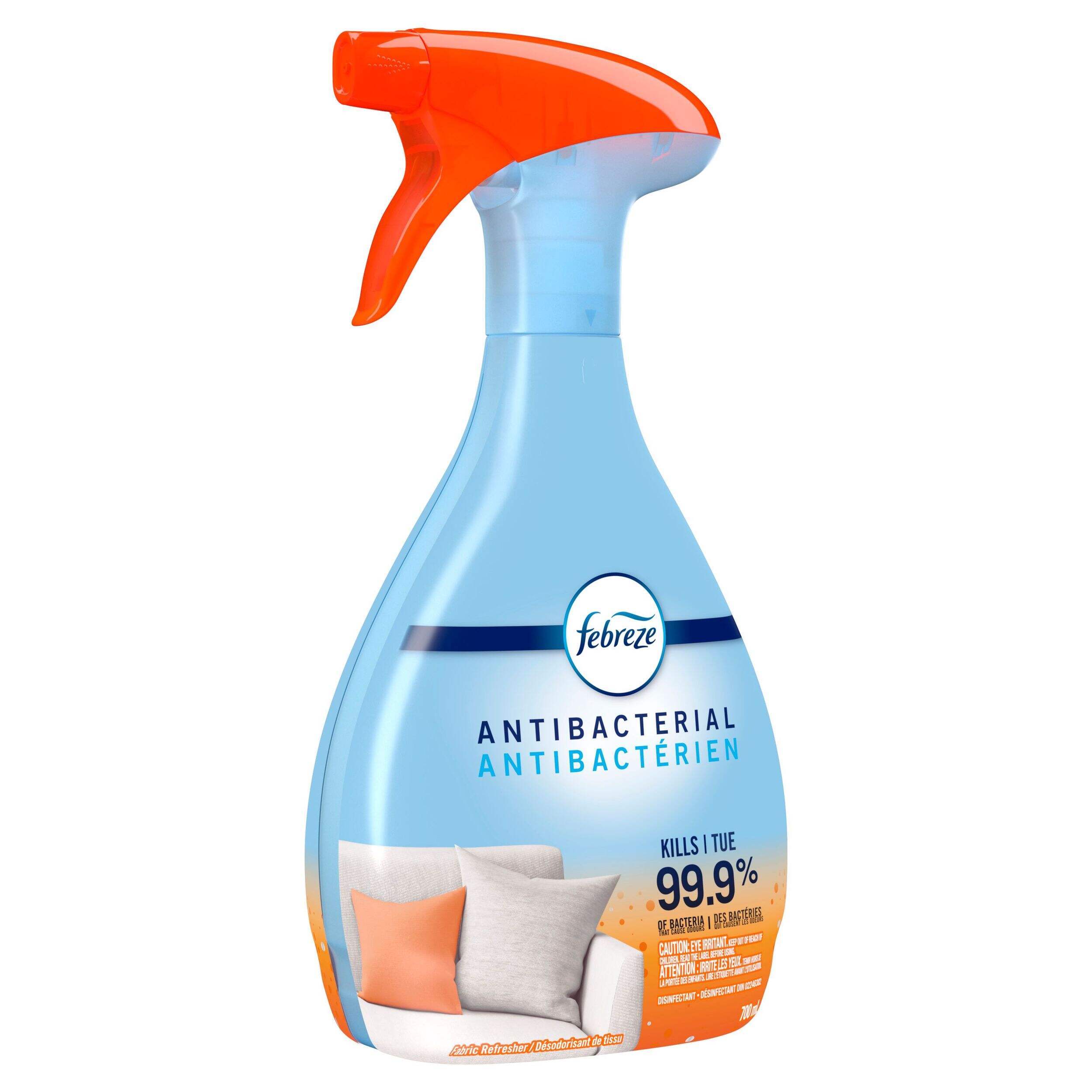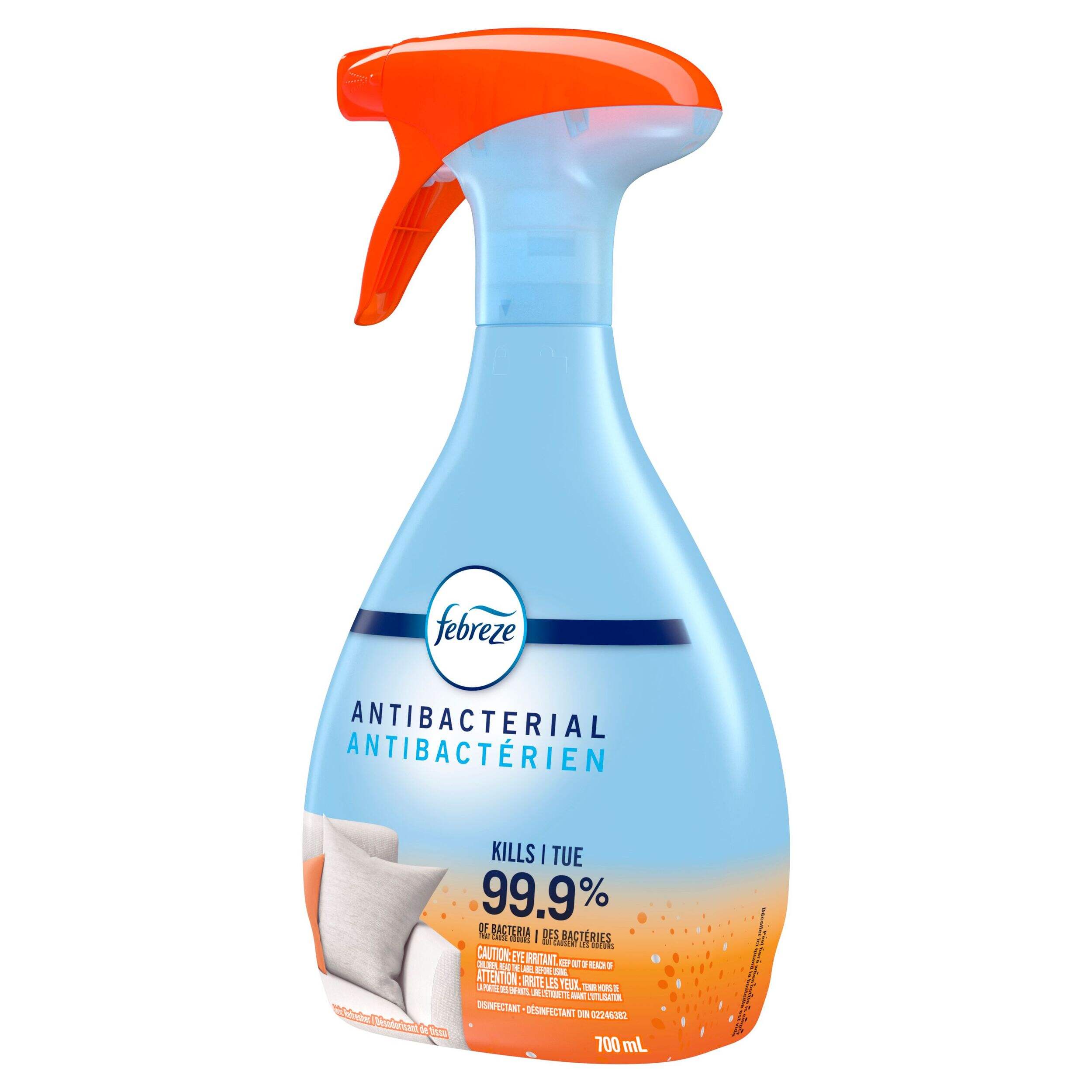 Le désodorisant textile en vaporisateur antibactérien Febreze au parfum original garde votre maison fraîche en combattant les odeurs incrustées dans les tissus et les surfaces moelleuses. Formulé sans phtalates ni agents propulsifs inflammables, ce vaporisateur au parfum original laisse une odeur de fraîcheur et de propreté. Conçu pour les articles difficiles à laver comme les vêtements, les tissus d'ameublement, les tapis et les rideaux, le vaporisateur peut être pulvérisé pour humidifier les tissus et rafraîchir les espaces intérieurs. La bouteille de 700 mL contient suffisamment de liquide à vaporiser pour offrir une protection continue contre les odeurs et une sensation de fraîcheur dans toute la maison.