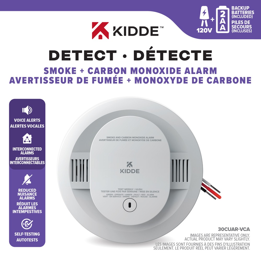 Assurez la sécurité de votre maison avec l'avertisseur de fumée et de monoxyde de carbone 2-en-1 avec pile AA Kidde. Cet appareil novateur offre une double protection contre le feu et le monoxyde de carbone, garantissant que votre maison et vos proches sont protégés contre deux dangers majeurs. L'alarme câblée de 120 V est dotée d'une pile de secours fiable pour maintenir une protection même en cas de panne de courant. Des alertes vocales claires annoncent : Incendie! Incendie! Incendie! ou Attention : monoxyde de carbone!; pour vous informer immédiatement du danger. Faites confiance à Kidde pour offrir des solutions de sécurité complètes qui assurent la sécurité de votre maison et de votre famille.